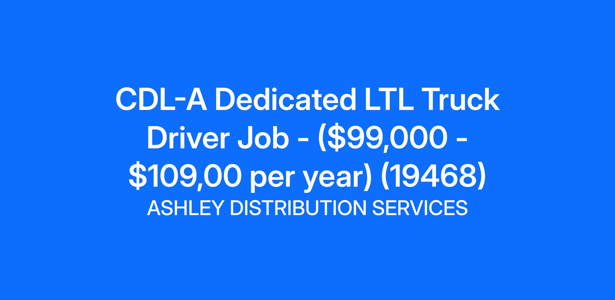 CDL-A Dedicated LTL Truck Driver Job - ($99,000 - $109,00 per year) (19468)