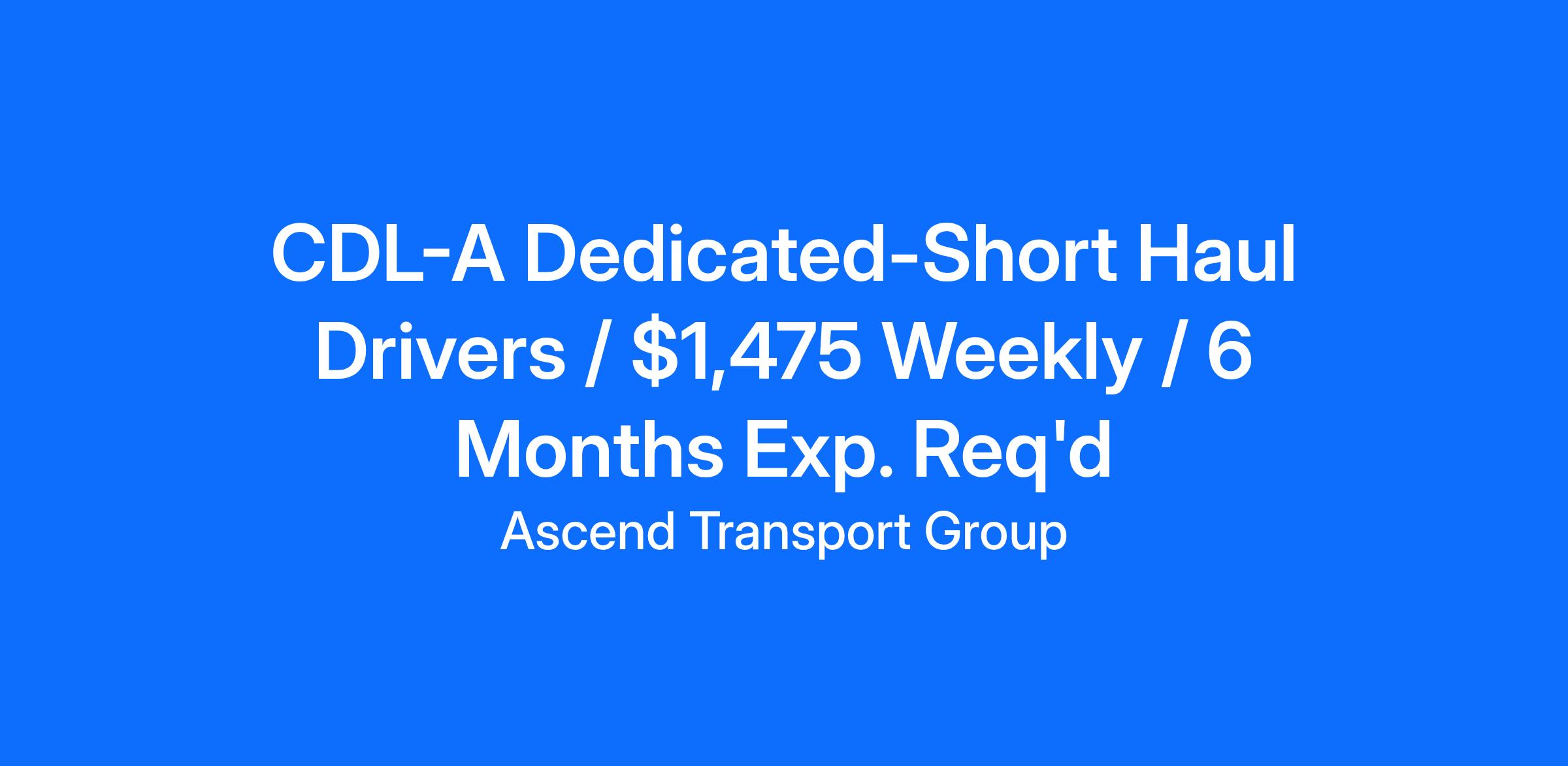 CDL-A Dedicated-Short Haul Drivers / $1,475 Weekly / 6 Months Exp. Req'd