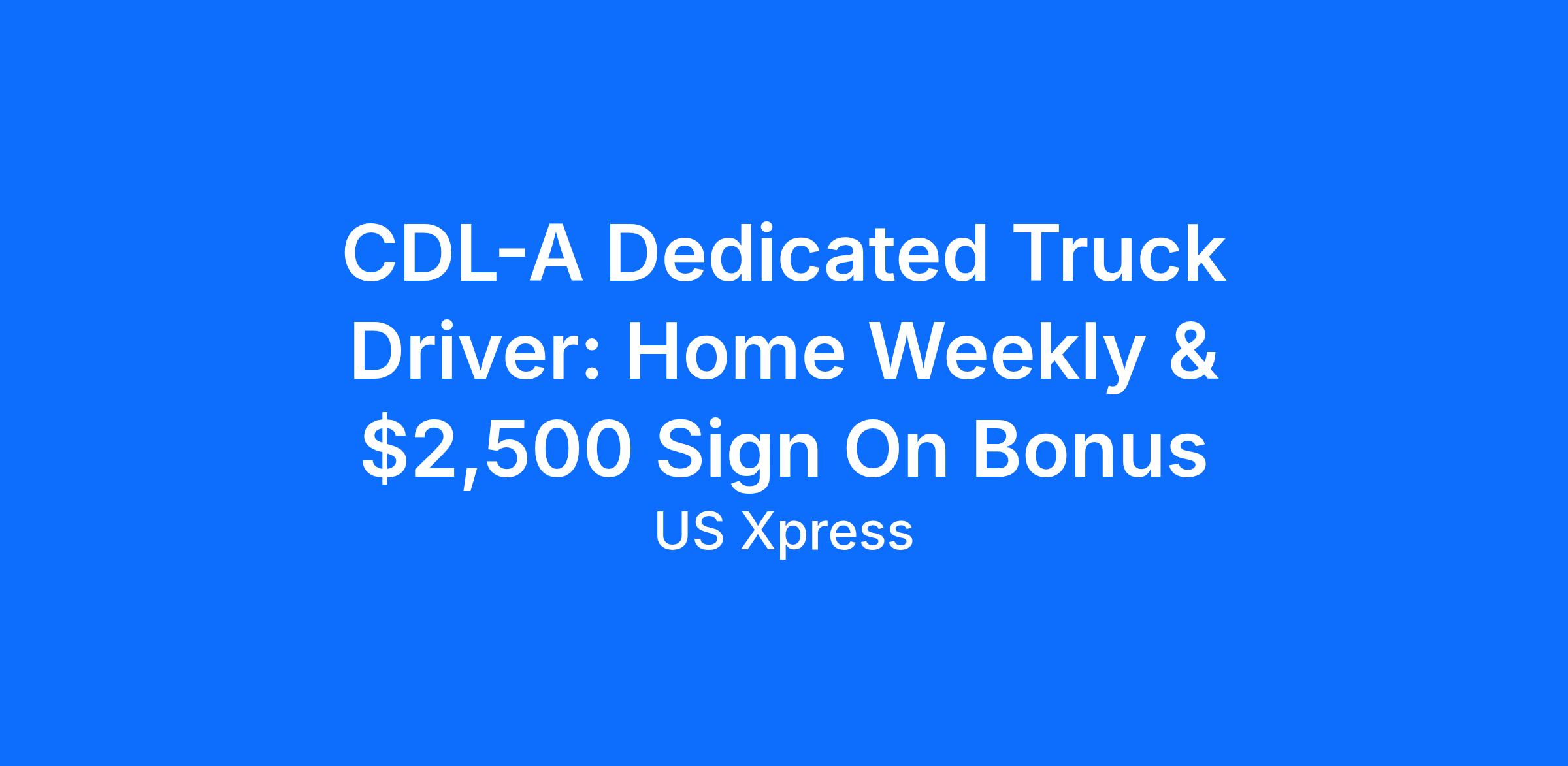 CDL-A Dedicated Truck Driver: Home Weekly & $2,500 Sign On BonusEarn $75k - $100k+ annuallyApply Online or Call 855-###-#### Today!U.S. Xpress is offering a high-earning dedicated opportunity for drivers who take pride in working hard and want to be rewarded for it. This position involves driver unloading, and we make sure that effort is recognized with top-tier pay-$0.82 - $0.85 CPM, paid training, and a $2,500 sign-on bonus. You'll run predictable routes delivering everyday household essentials across IA, IL, IN, KY, MI, and WI. You'll have consistent weekly home time, and receive on-site support from tenured operations leaders, customers, and the driver community. With a supportive team behind you and 24/7 driver assistance, you'll have everything you need to overcome obstacles and play a major role in keeping this fleet's on-time performance exceptional. **Pay:** * $2,500 Sign On Bonus * $0.82 - $0.85 per mile * Average $1,500 - $1,700 per week * Top earners average $2,000+ per week * Earn $75k - $100k+ annually * Unload, Stop & Backhaul Pay **What We Offer:** * Consistent Miles * Home Weekly * 100% Touch Freight * 24/7 Driver Support * Paid Vacation * Trainer opportunities are available to increase earning potential, support the next generation of drivers, and grow your career **Home Time:** * Home Weekly **Route:** * Reliable routes delivering to IA, IL, IN, KY, MI, and WI **Equipment:** * Newer Equipment Averaging 18 MonthsBenefits: