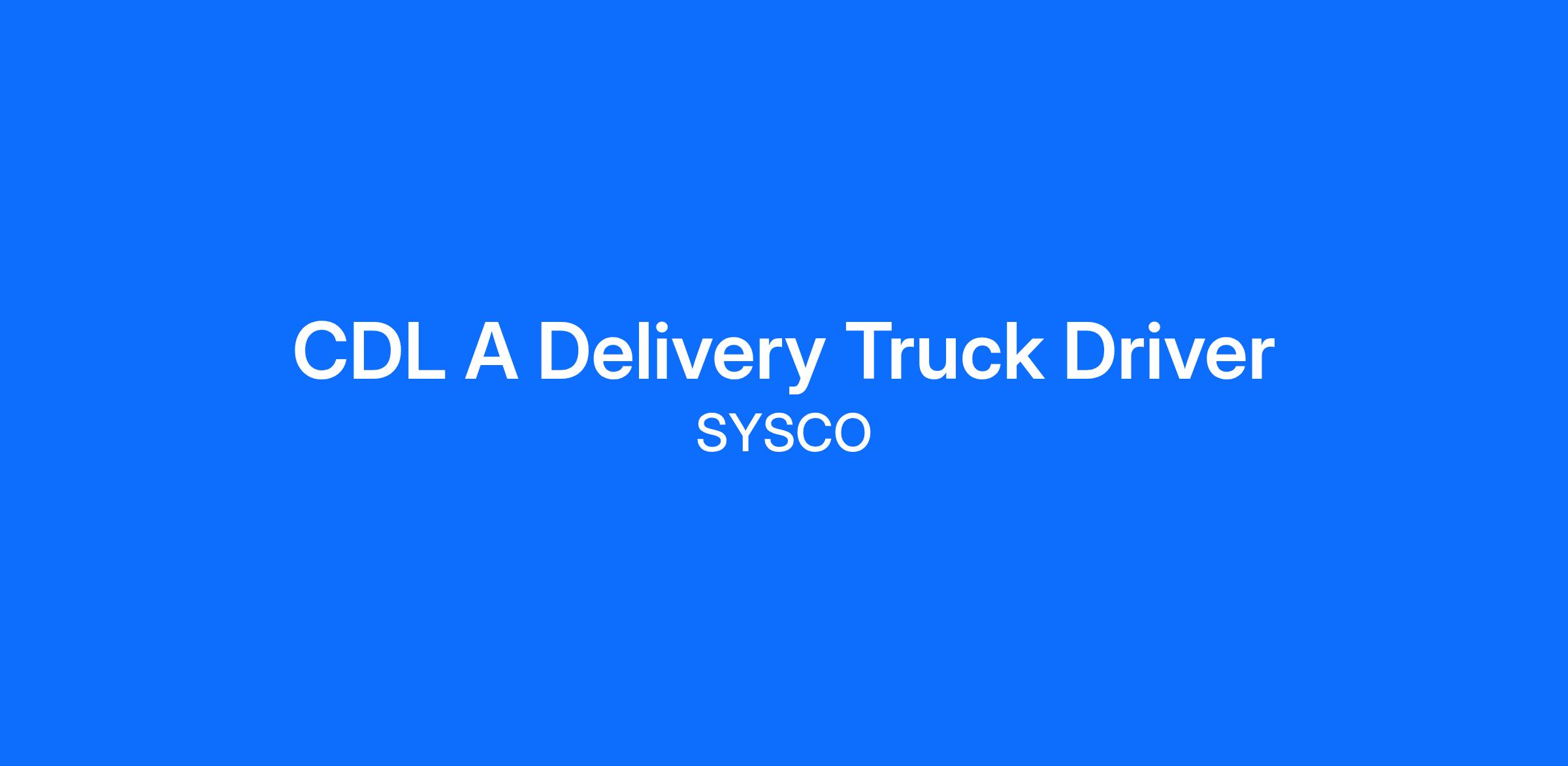 Sysco is more than just a place to work. Our passion for food and our customers has made us the industry leader. To remain on top, we will continue to think bigger, work harder and never give up. It takes a special kind of CDL A Delivery Truck Driver to work for Sysco. Are you ready to drive success?