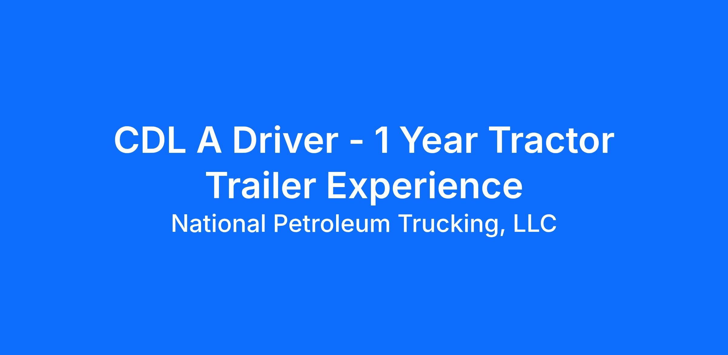 CDL A Driver - 1 Year Tractor Trailer Experience