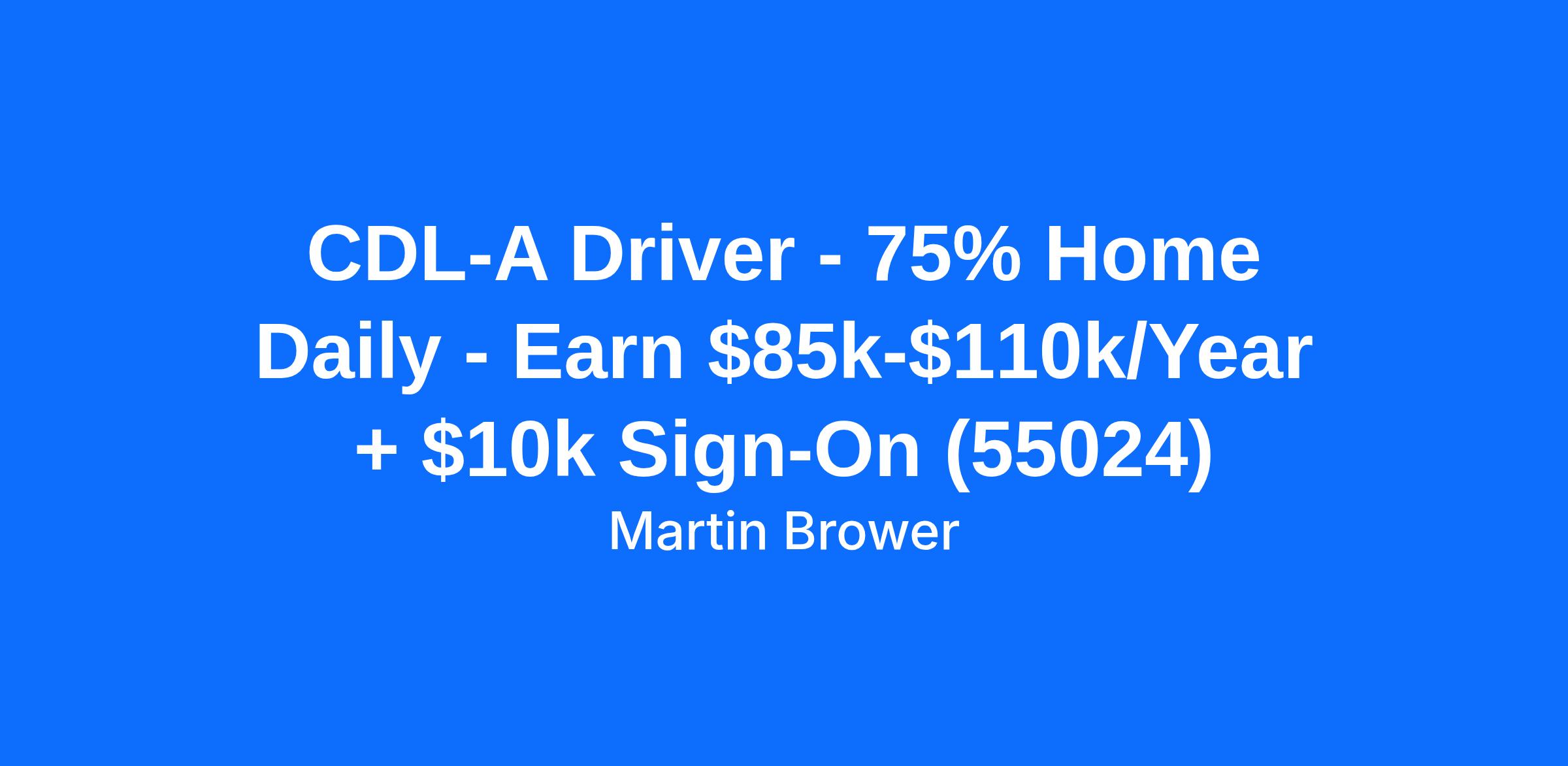 CDL-A Driver - 75% Home Daily - Earn $85k-$110k/Year + $10k Sign-On (55024)