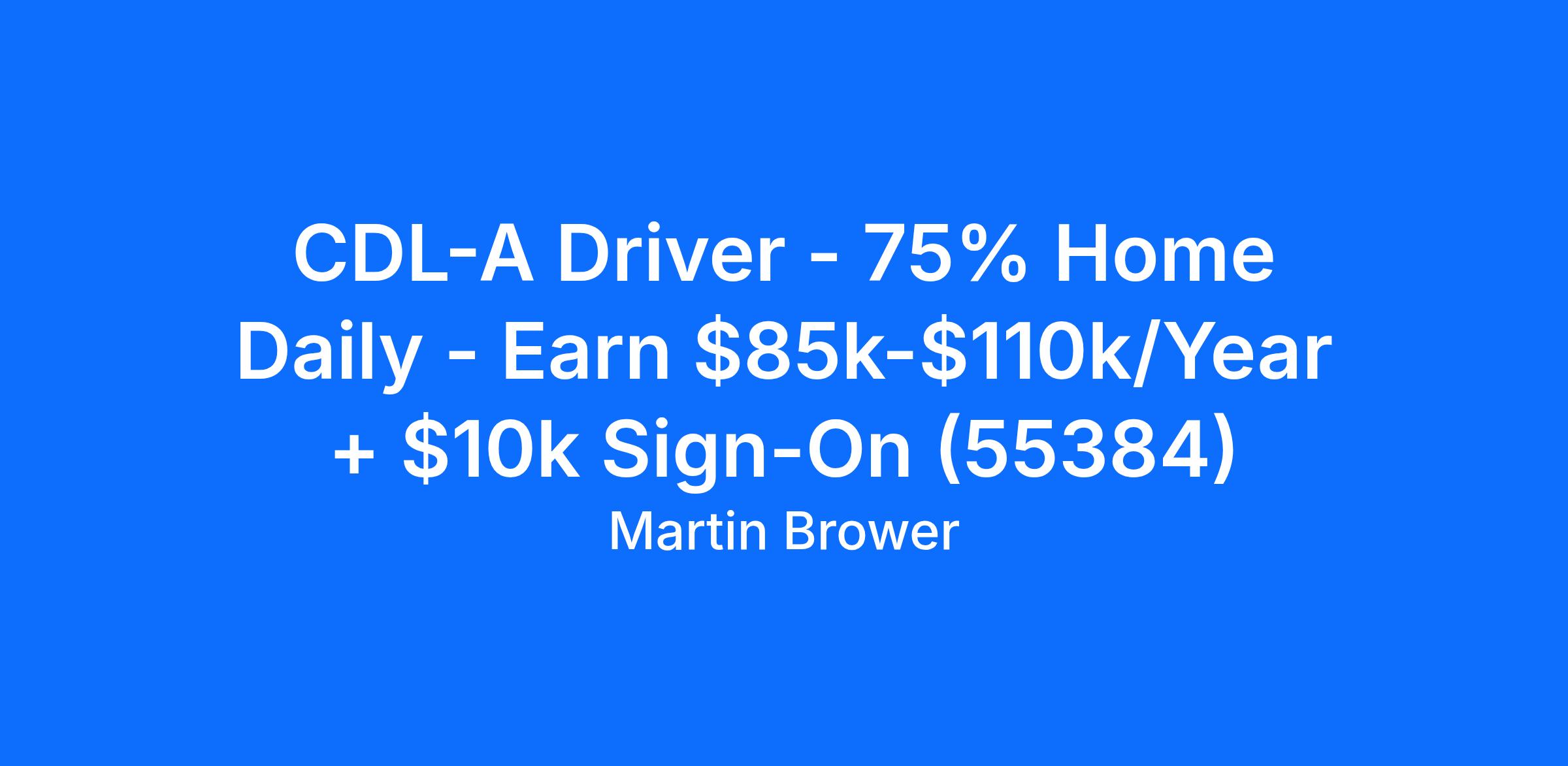 CDL-A Driver - 75% Home Daily - Earn $85k-$110k/Year + $10k Sign-On (55384)