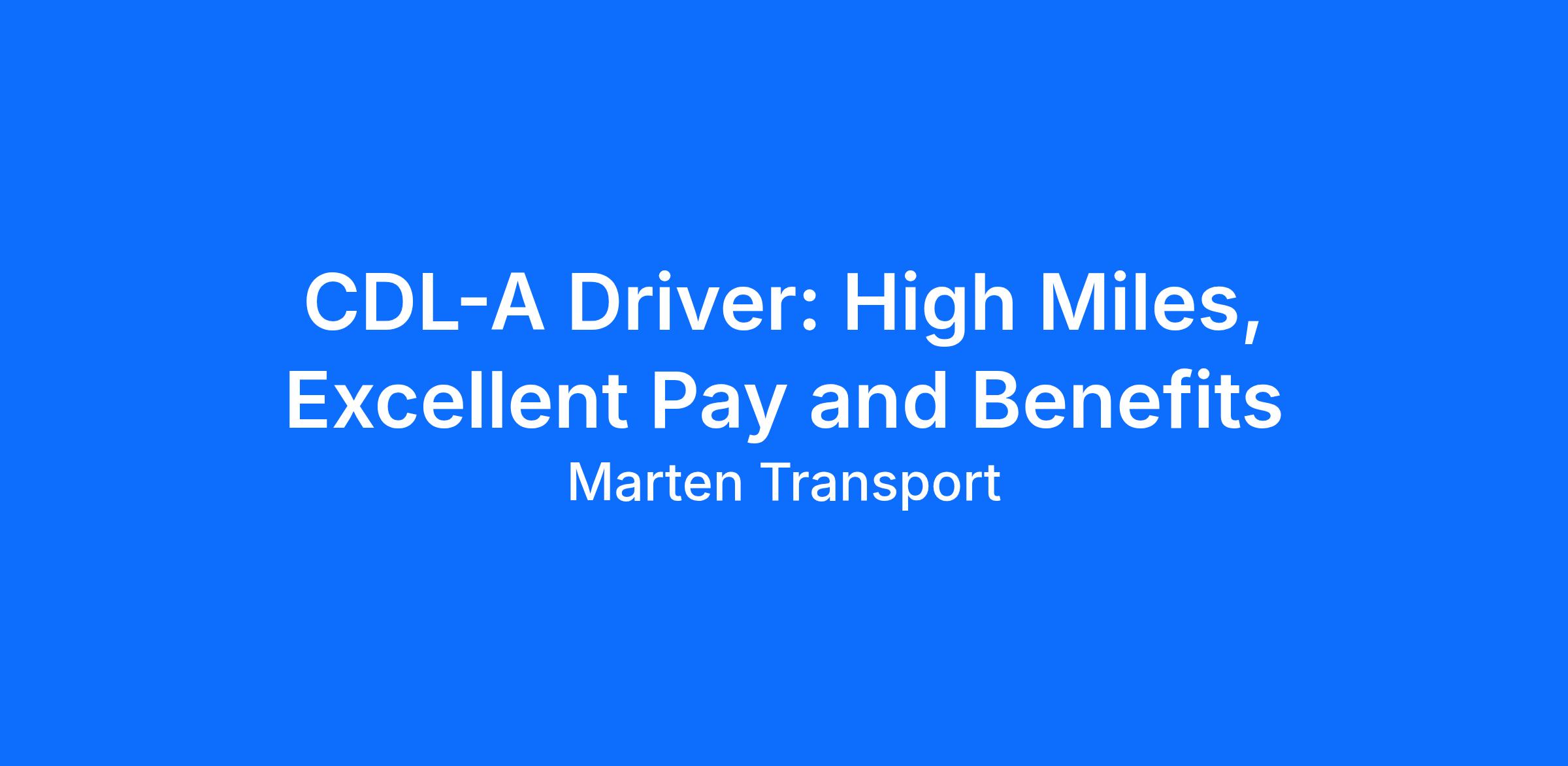 Ready for a career upgrade? Join Marten Transport! As a stable, financially healthy carrier - and a 2025 TCA Elite Fleet honoree - we offer the best of both worlds: high miles in your region and the unbeatable earning potential you deserve. And now, we're rewarding safety with even more opportunity - if you have a clean record, you can earn more.
