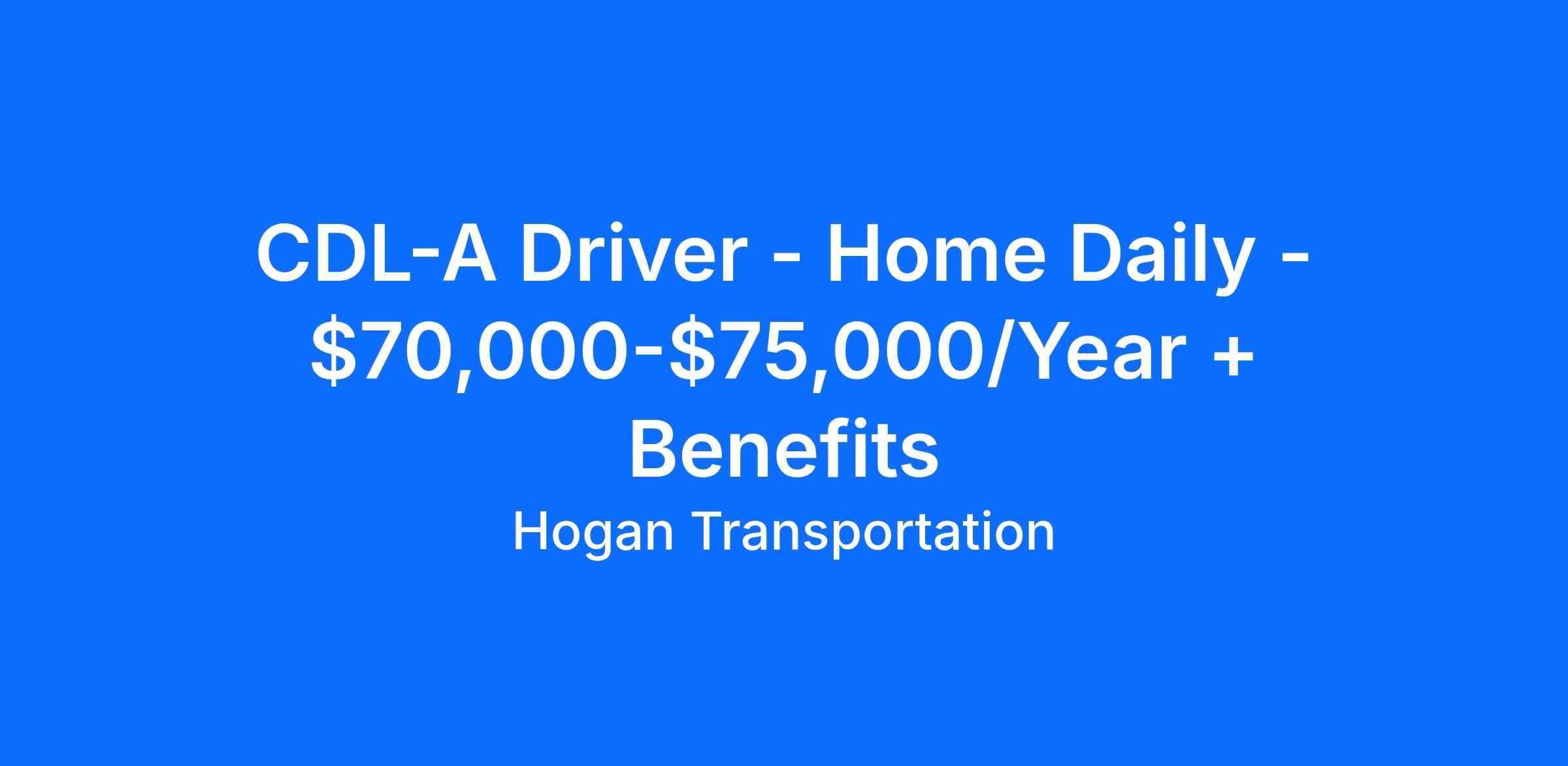 CDL-A Driver - Home Daily - $70,000-$75,000/Year + Benefits