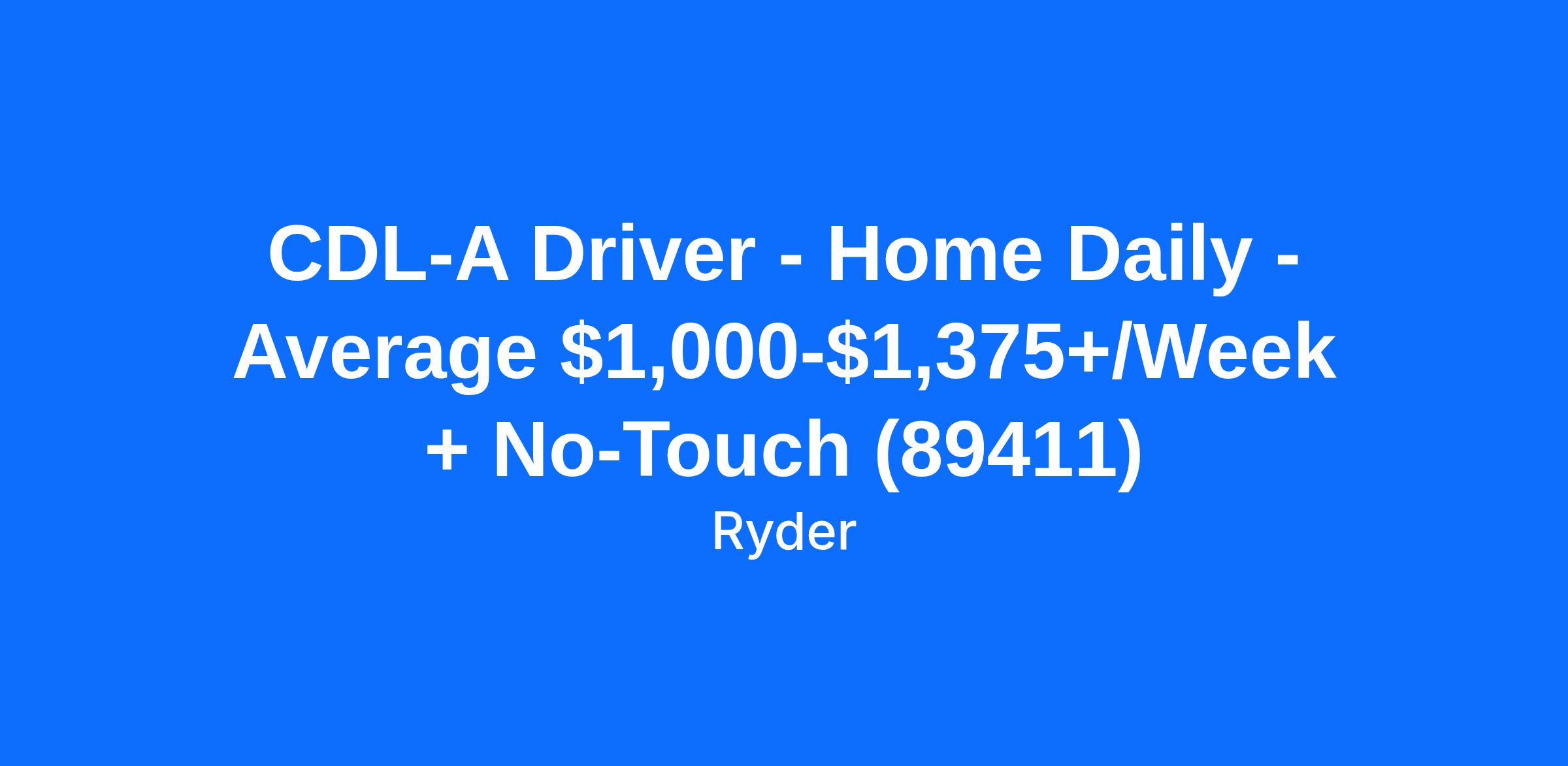 CDL-A Driver - Home Daily - Average $1,000-$1,375+/Week + No-Touch (89411)