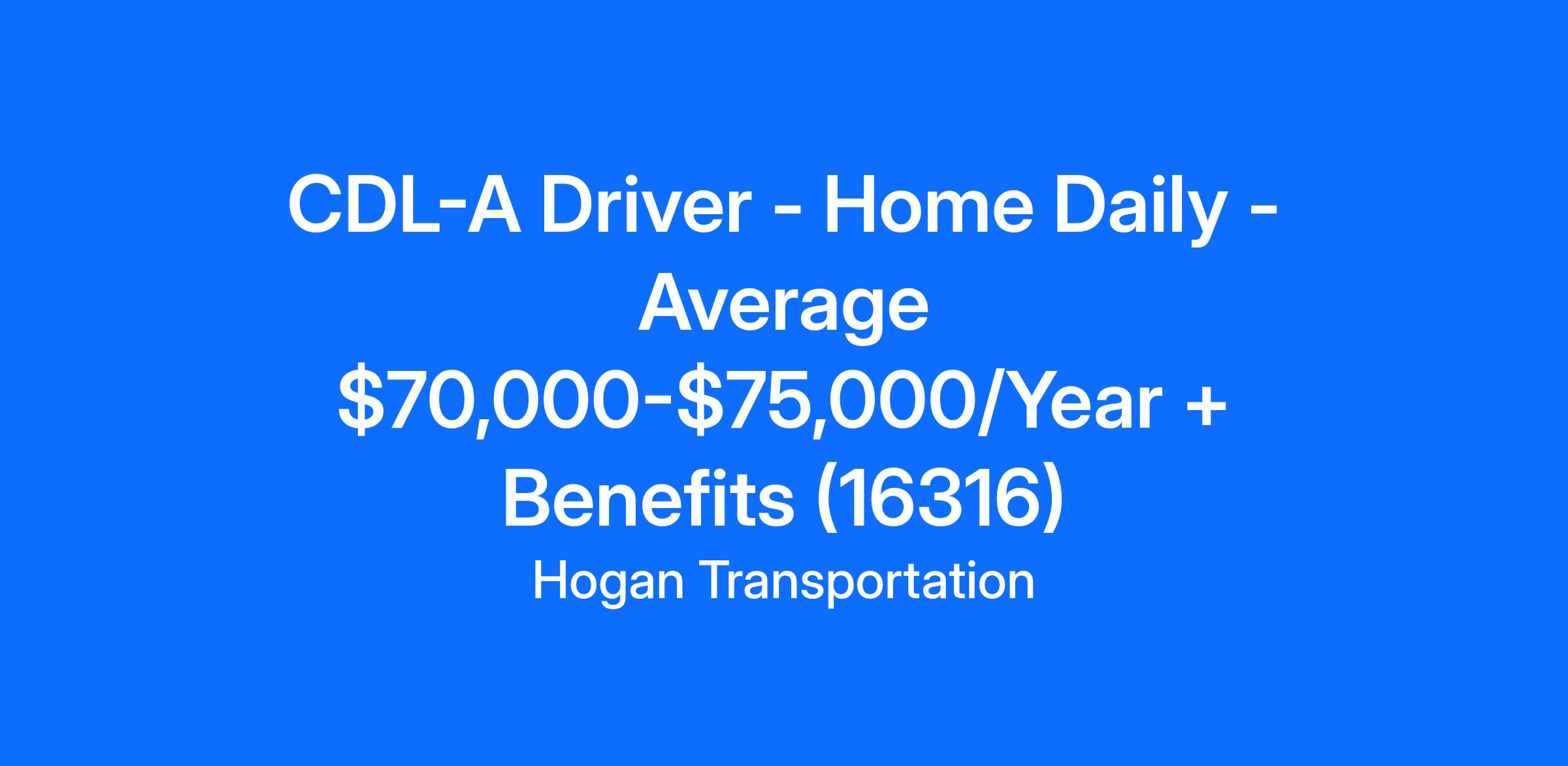 CDL-A Driver - Home Daily - Average $70,000-$75,000/Year + Benefits (16316)
