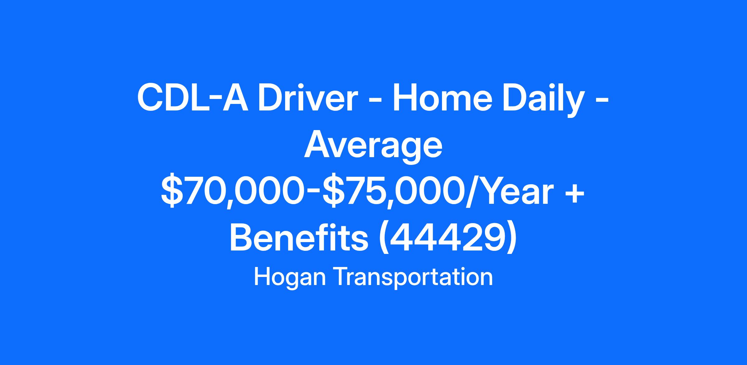 CDL-A Driver - Home Daily - Average $70,000-$75,000/Year + Benefits (44429)