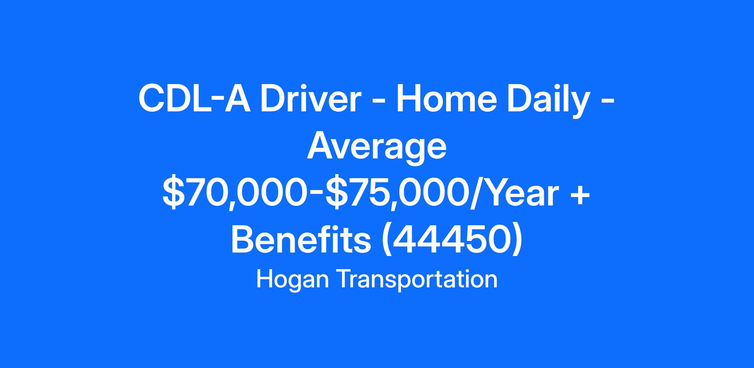 CDL-A Driver - Home Daily - Average $70,000-$75,000/Year + Benefits (44450)