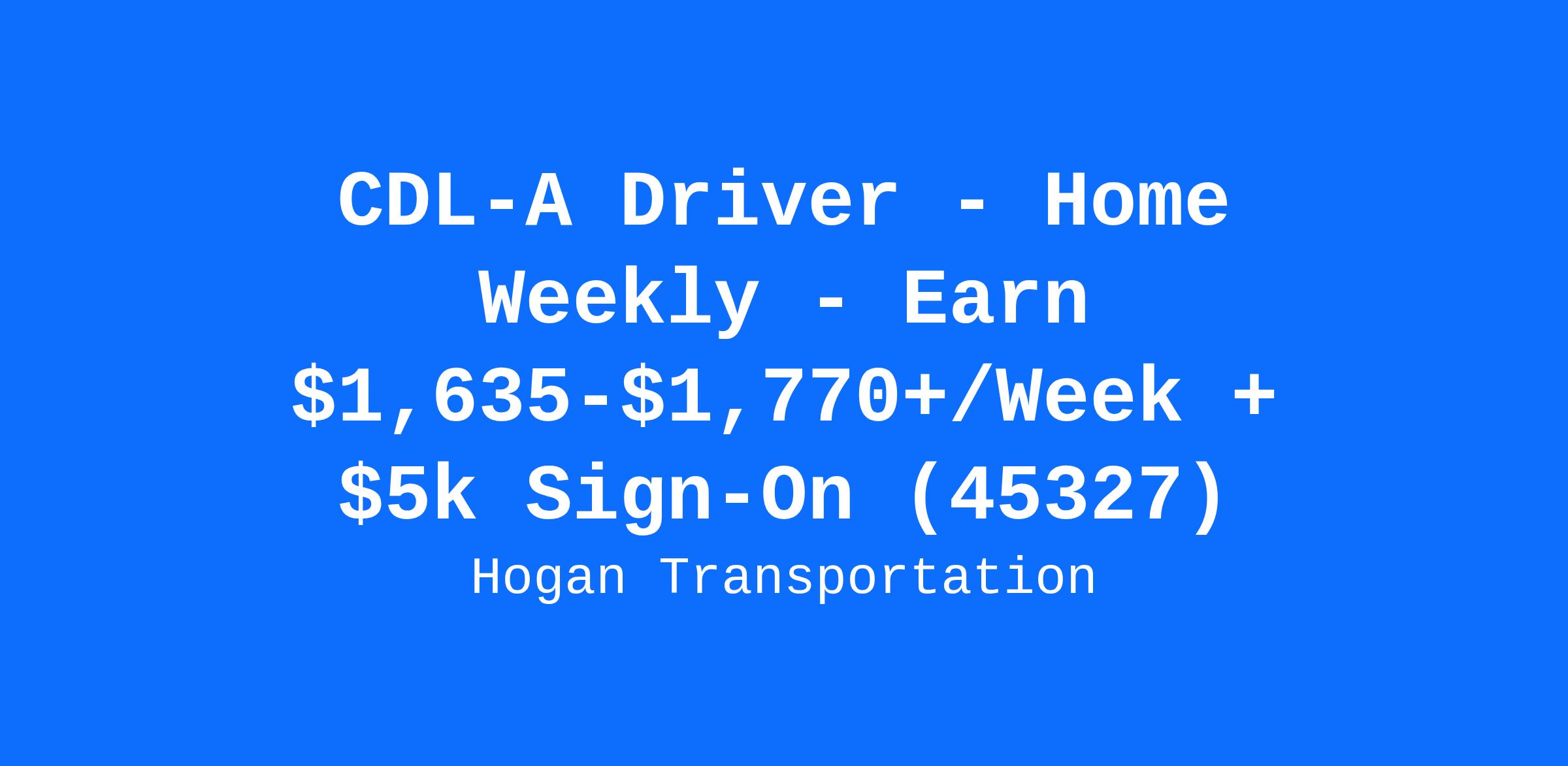 CDL-A Driver - Home Weekly - Earn $1,635-$1,770+/Week + $5k Sign-On (45327)