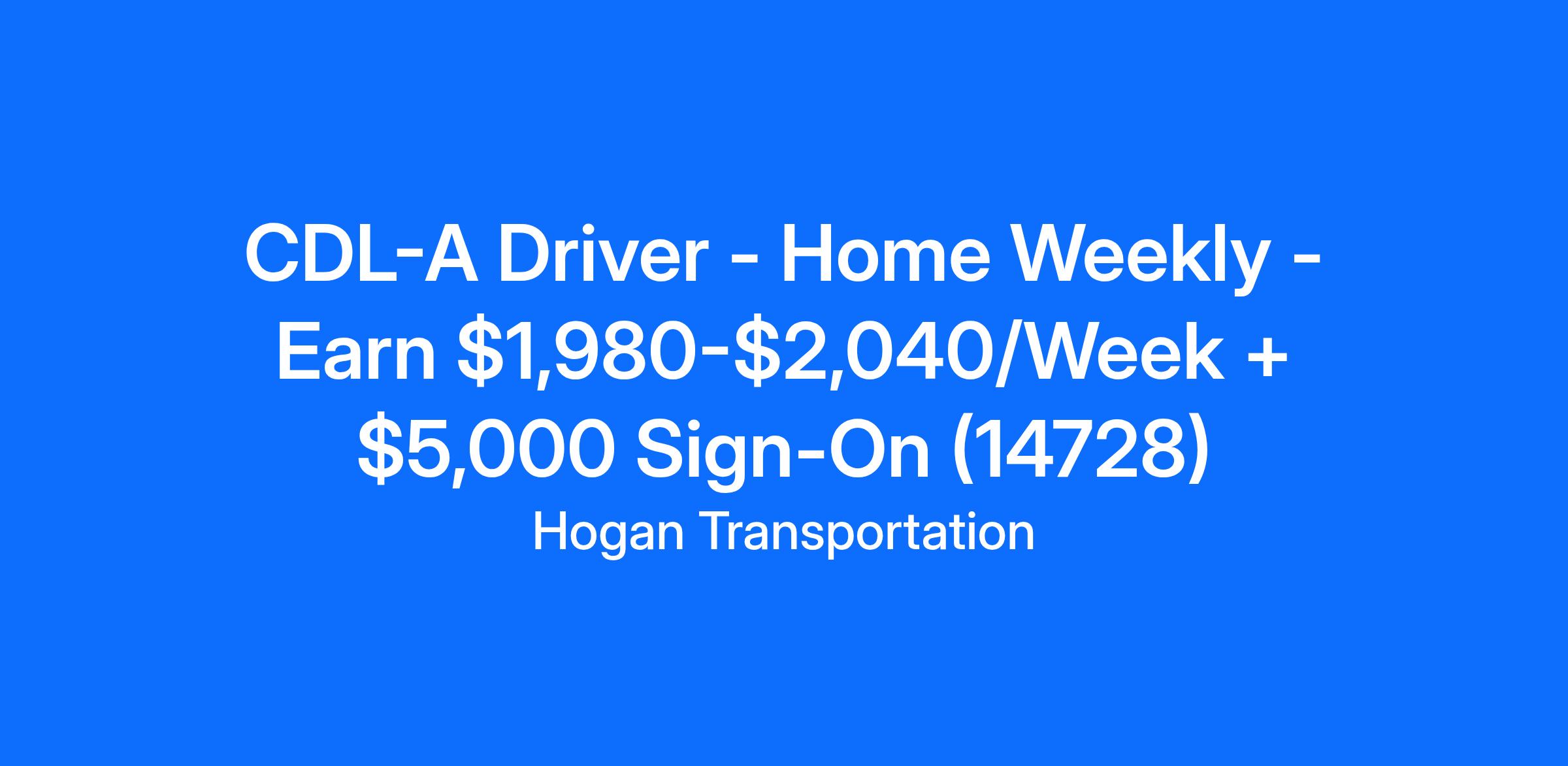 CDL-A Drivers - Home Weekly - Earn $1,980 - $2,040 Weekly!