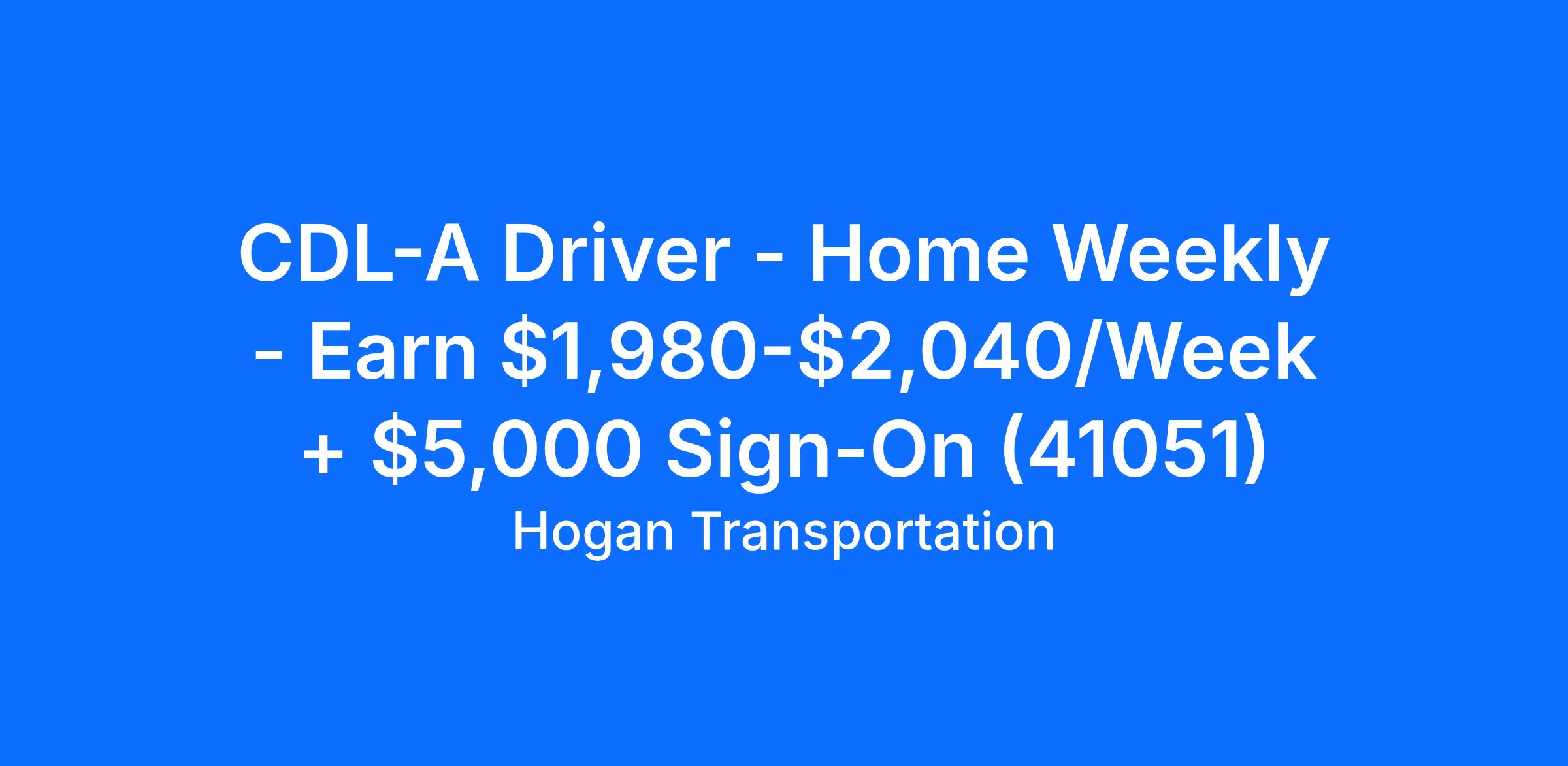 CDL-A Drivers - Home Weekly - Earn $1,980 - $2,040 Weekly!