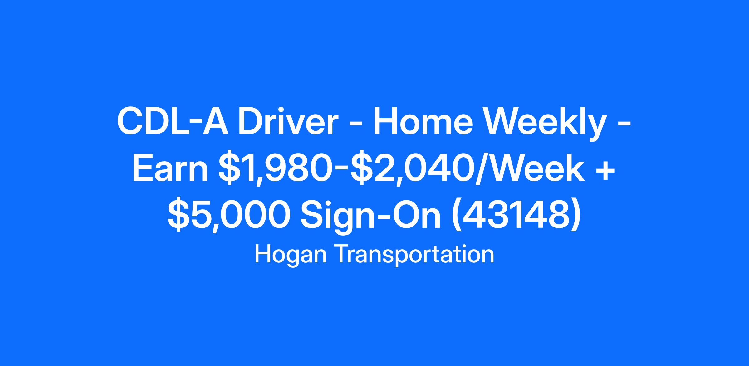 CDL-A Driver - Home Weekly - Earn $1,980-$2,040/Week + $5,000 Sign-On (43148)