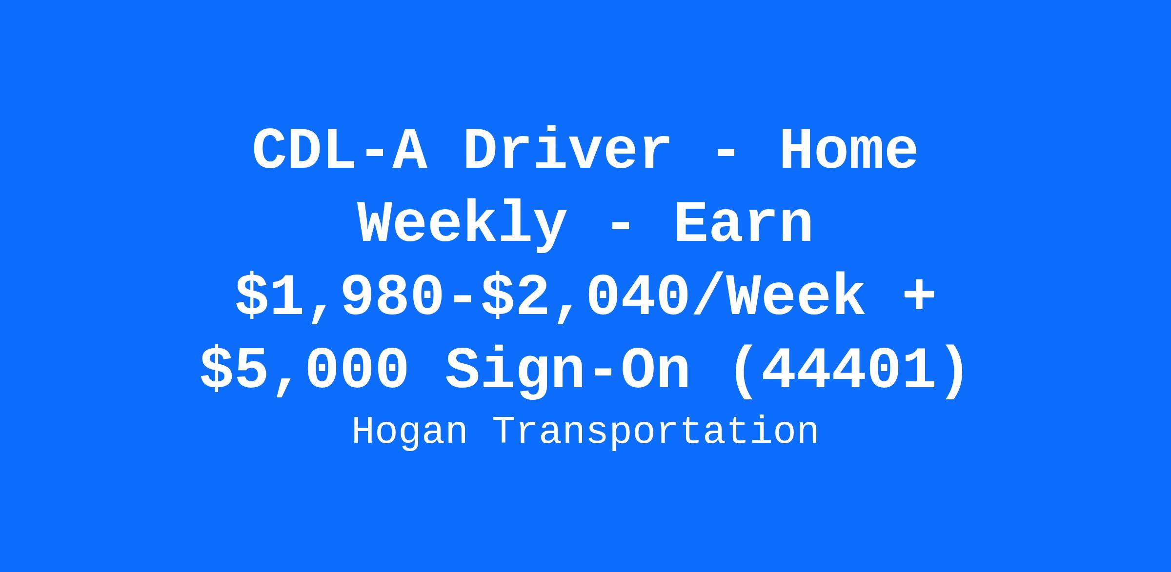 CDL-A Driver - Home Weekly - Earn $1,980-$2,040/Week + $5,000 Sign-On (44401)