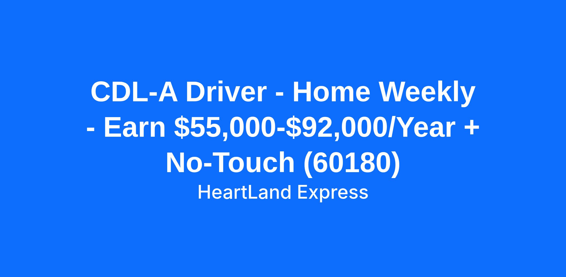 CDL-A Driver - Home Weekly - Earn $55,000-$92,000/Year + No-Touch (60180)