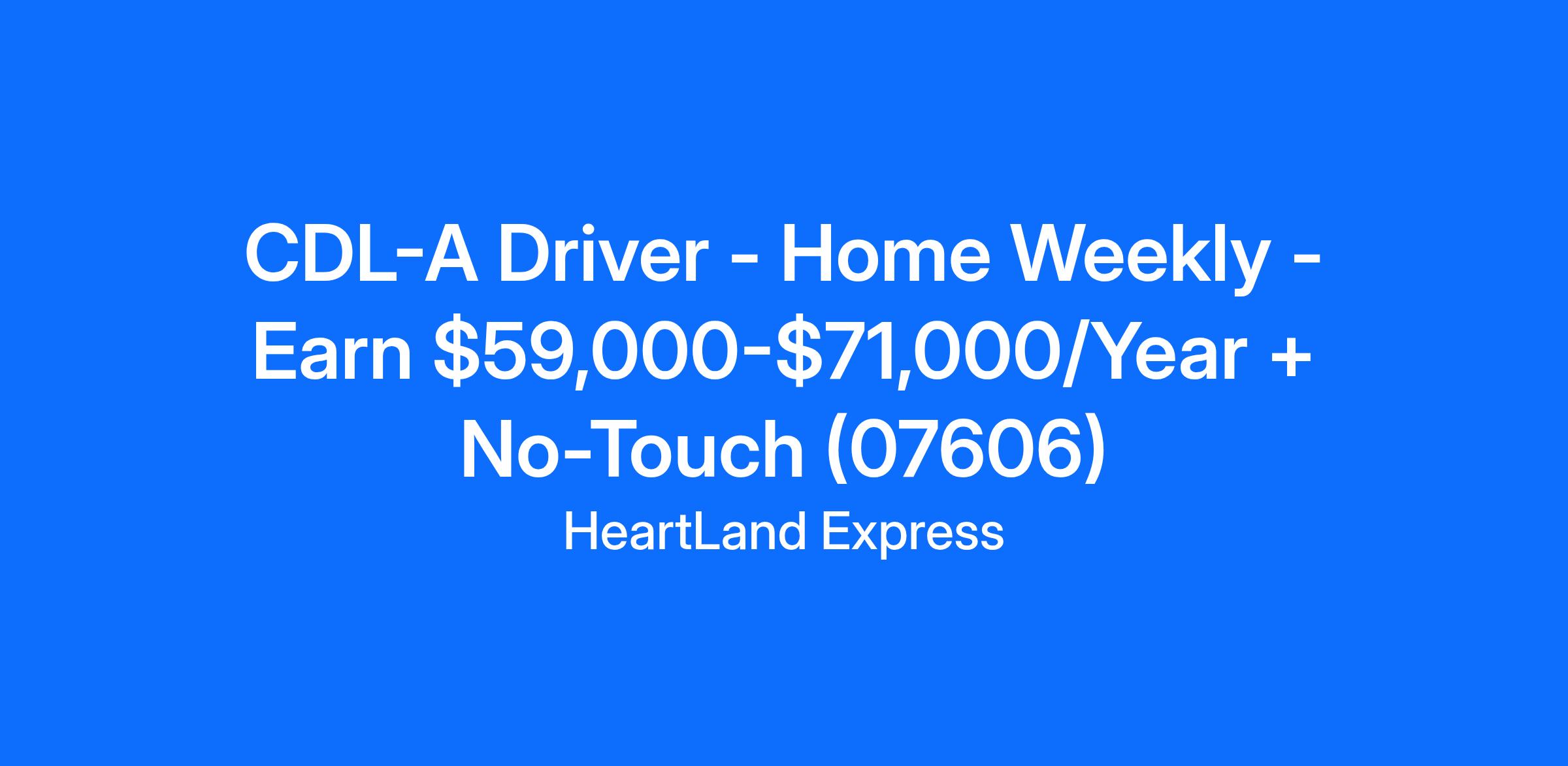 CDL-A Driver - Home Weekly - Earn $59,000-$71,000/Year + No-Touch (07606)