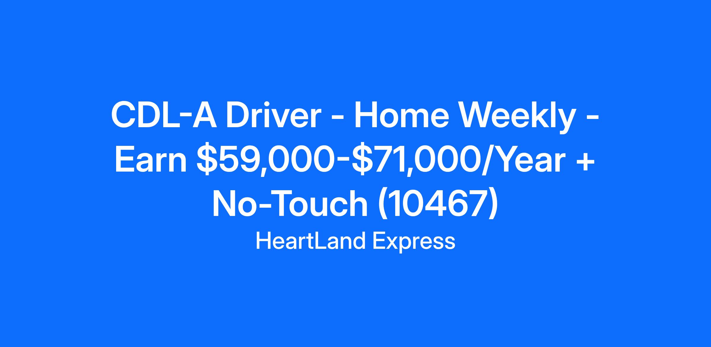 CDL-A Driver - Home Weekly - Earn $59,000-$71,000/Year + No-Touch (10467)