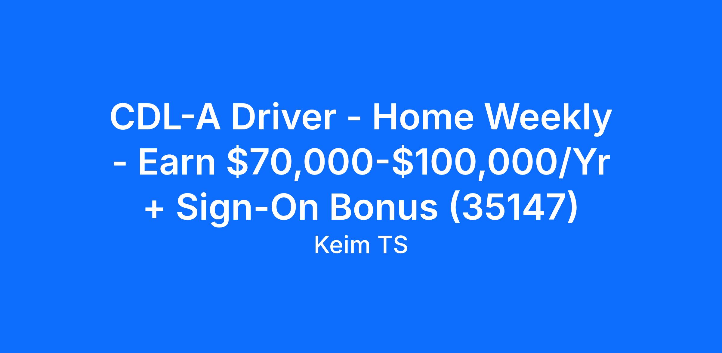 CDL-A Driver - Home Weekly - Earn $70,000-$100,000/Yr + Sign-On Bonus (35147)