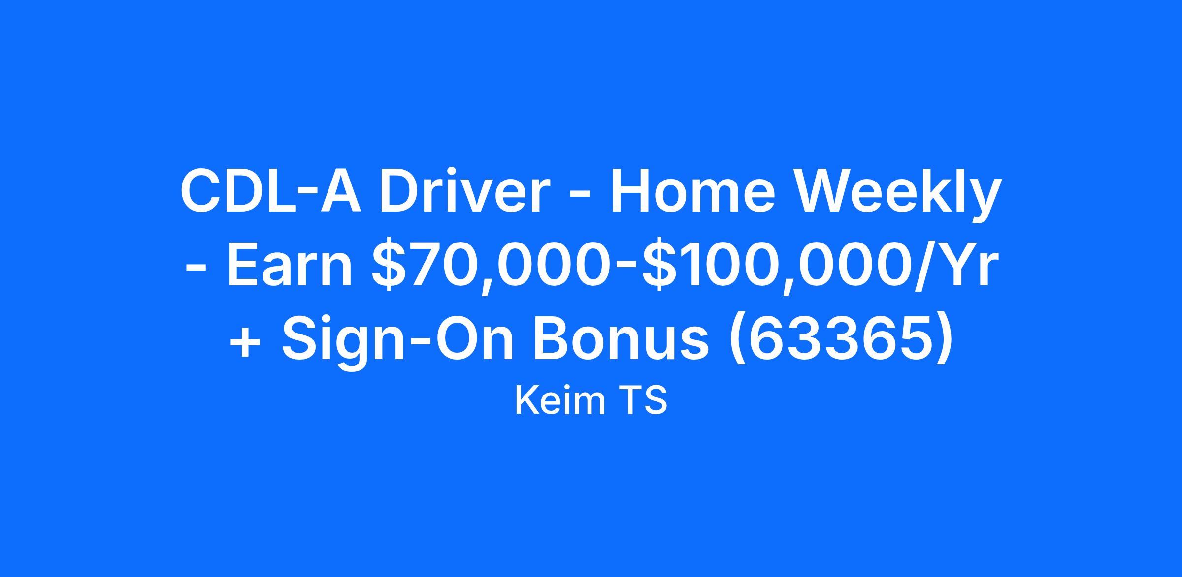 CDL-A Driver - Home Weekly - Earn $70,000-$100,000/Yr + Sign-On Bonus (63365)