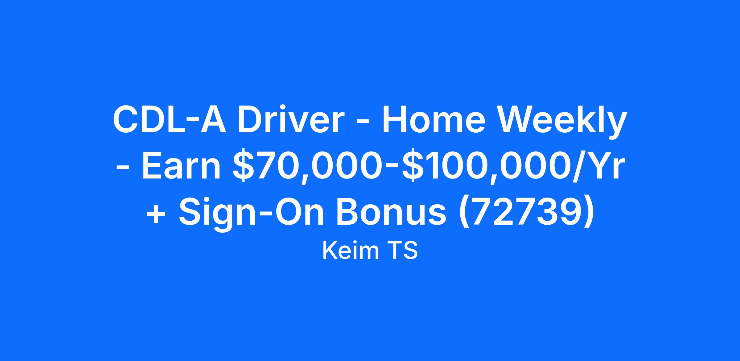 CDL-A Driver - Home Weekly - Earn $70,000-$100,000/Yr + Sign-On Bonus (72739)