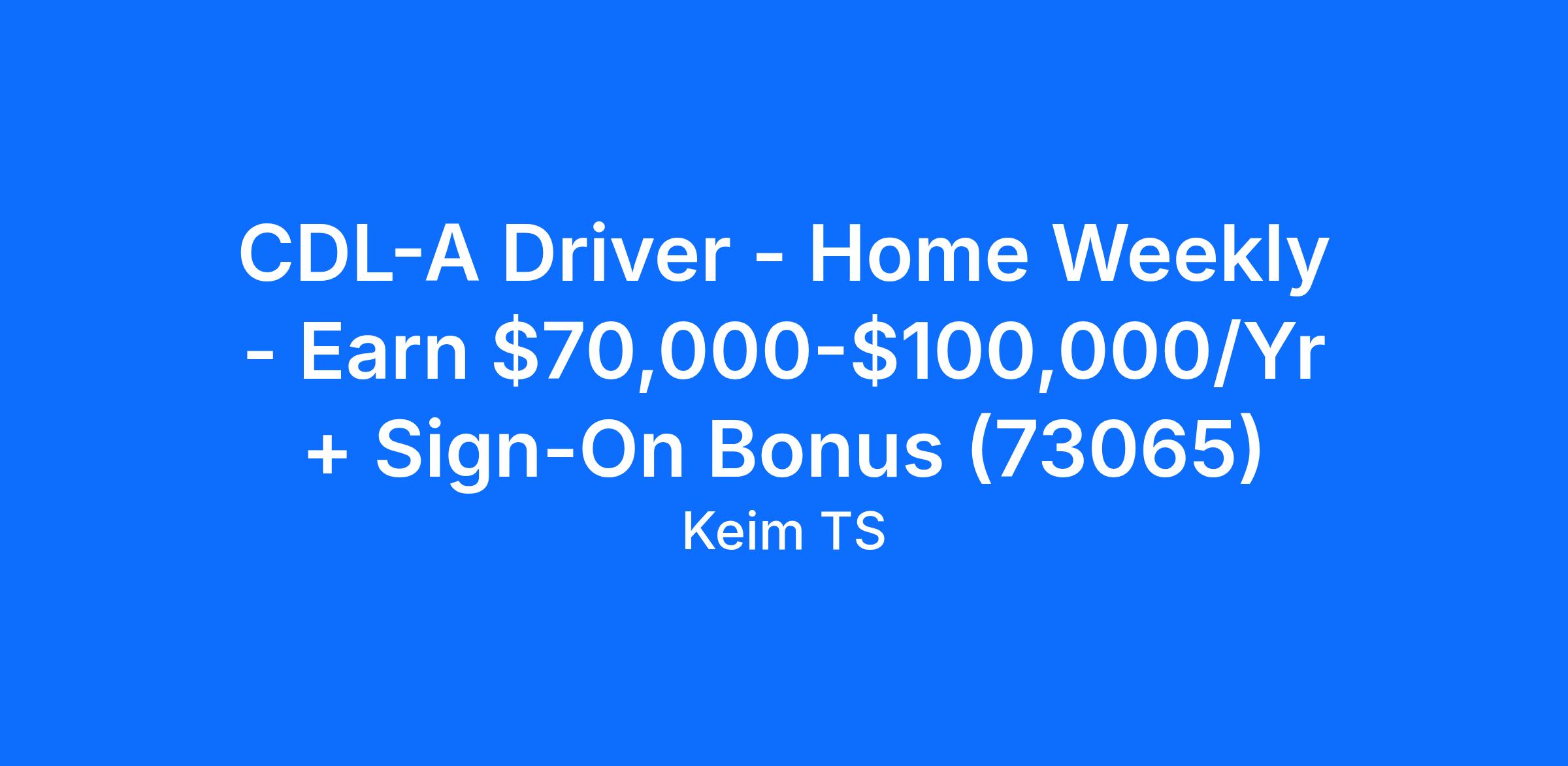 CDL-A Driver - Home Weekly - Earn $70,000-$100,000/Yr + Sign-On Bonus (73065)