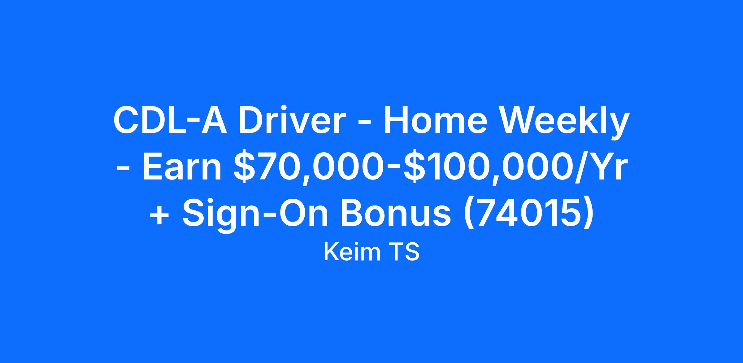 CDL-A Driver - Home Weekly - Earn $70,000-$100,000/Yr + Sign-On Bonus (74015)
