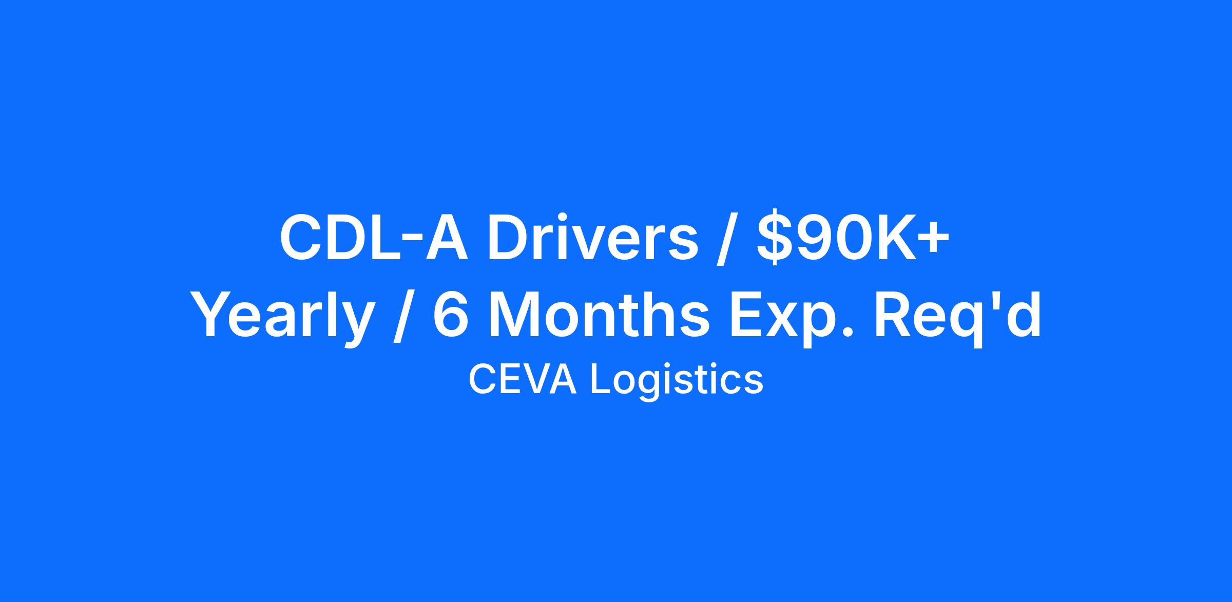 CEVA Logistics is Hiring CDL A Company Drivers in Portland, OR We Have the Benefits You Need:Drivers gross $90,000+ yearlyRoute pay:$353 per driver$45 per diem per driver$2,500 sign-on bonusHome on weekends (regional routes)Driver referral bonus:$1,000 per driver hiredPaid after 90 days of employmentQuarterly safe driving bonusPaid via weekly direct depositOutstanding benefits starting 1st day of the following month after your date of hire if enrolled within 45 daysCEVA pays 70% of the cost of single medical benefits coverage!401k with company match100% on the first 3P% on the next 2%Eligible after 90 days of hire15 PTO days in January after year of hireProrated 1st year8 paid company holidaysPlus 1 floating holidayTuition/education assistanceUp to $5,200 toward an undergraduate degreeUp to $8,000 toward a post-graduate degreeWith approval after 1 year of full-time employmentPaid orientationCompany-provided safety equipment Other Perks/Discount Programs:Employee discount portal with deals on:TravelTicketsAutoHealthWellnessFoodAnd more! Company Driver Requirements:Valid CDL AAt least 6 months of verifiable CDL A driving experienceDoubles endorsement and experience are requiredMust be willing to team or already established as a team driverMust be at least 21 years of age or olderMust have a high school diploma or GEDAt least 5 years of industry driving experience may be substituted for a high school diploma or GEDClean motor vehicle record (MVR) in the last 3 yearsNo more than 3 moving violations/traffic citations in the past 3 yearsNo more than 2 preventable accidents (chargeable or not) in the last 3 yearsMust meet Department of Transportation (DOT) testing and physical requirements and be knowledgeable of DOT regulationsMust be able to pass a required pre-employment drug screenMust be able to read, write, and speak EnglishDrivers must live within 45 miles of Portland, OR, or be willing to relocate for this position About Ceva LogisticsCEVA Logistics is an industry leader providing supply chain management solutions and exceptional service to large and medium-sized national and multi-national companies. With a genuine culture of recognition, we want our employees to grow, develop, and be part of our journey. We are a team in every sense, and we support each other and work collaboratively to achieve our goals together. With multiple divisions, we have opportunities for every driver. So, whether you're looking for local, dedicated, or OTR routes, we have the miles and benefits you need. Join our team today! CEVA Logistics is proud to be an equal opportunity workplace and an affirmative action employer. All qualified applicants will receive consideration for employment without regard to race, color, religion, gender, gender identity or expression, sexual orientation, national origin, genetics, disability, age, veteran status, or any other characteristic. We are an Equal Opportunity Employer of Minorities, Females, Protected Veterans, and Individuals with Disabilities.