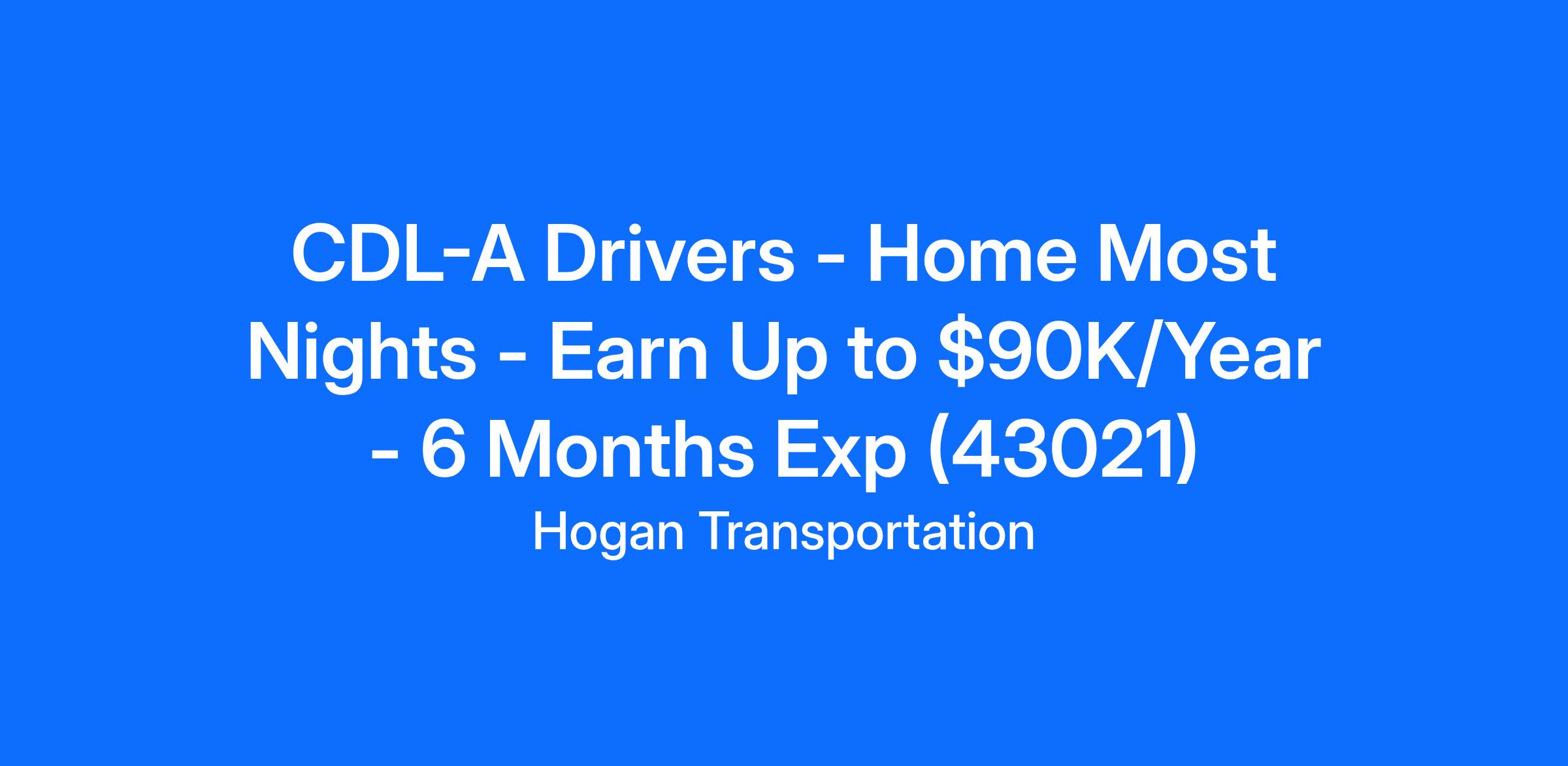 CDL-A Drivers - Home Most Nights - Earn Up to $90K/Year - 6 Months Exp (43021)
