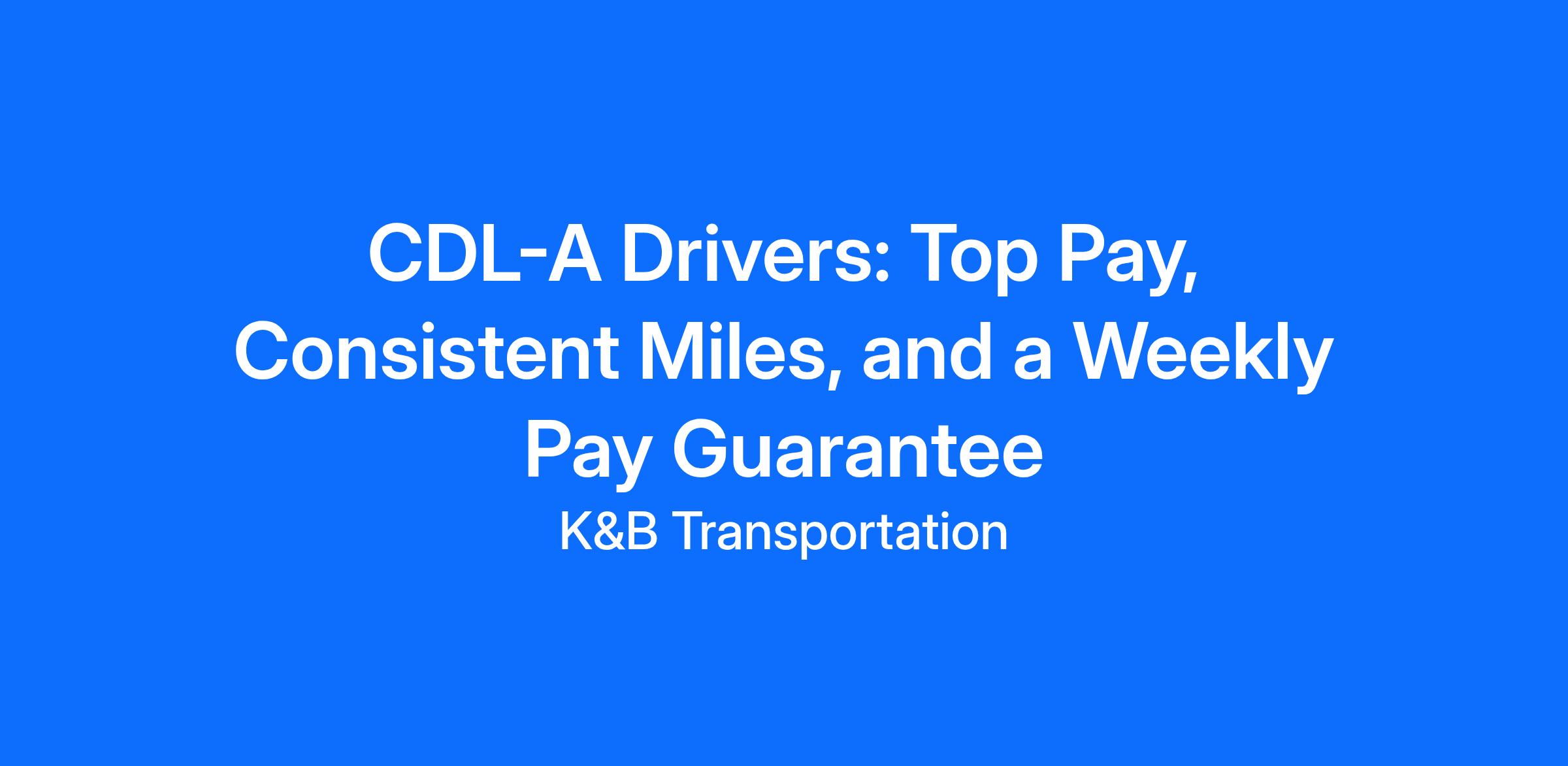 K&B Transportation GUARANTEES YOU $1426 per week minimum taking the worries out of your paycheck! Enjoy a 62 CPM starting wage with raises to 64 CPM! With our top miles and full accessory pay your guarantee is just a minimum! You can earn $1850 on top weeks with this leading pay package!