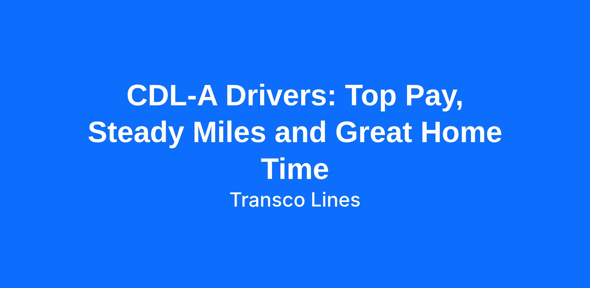 Call Us to Learn More (855) ###-#### Our Lines Lead Home Success By The Mile We know being a driver is tough. That's why we make sure you not only get great pay, but also the home time to help you enjoy it. You'll always get the utmost respect, appreciation, and support at Transco Lines. Learn more today and see for yourself. Class A CDL Truck Driver
