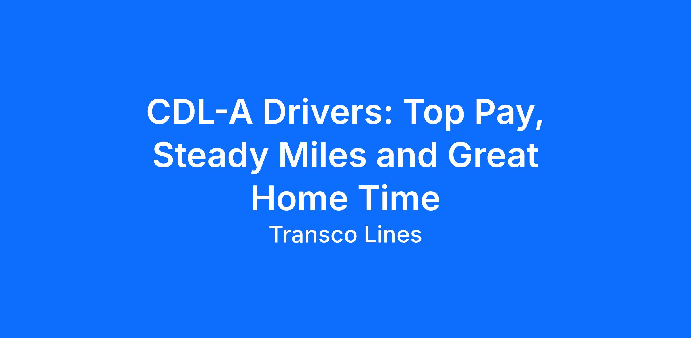 Call Us to Learn More (855) ###-#### Our Lines Lead Home Success By The Mile We know being a driver is tough. That's why we make sure you not only get great pay, but also the home time to help you enjoy it. You'll always get the utmost respect, appreciation, and support at Transco Lines. Learn more today and see for yourself. Class A CDL Truck Driver