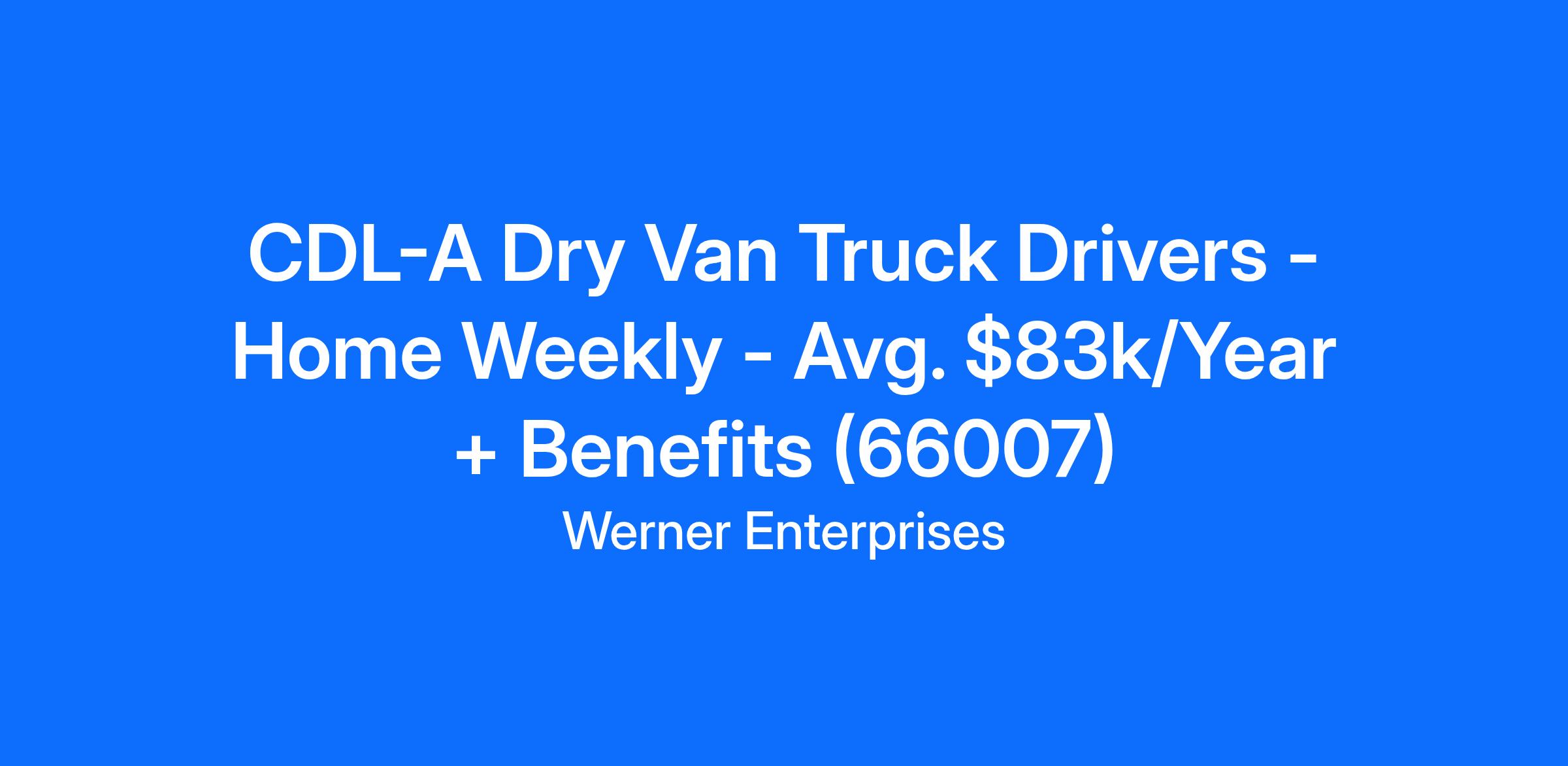 CDL-A Dry Van Truck Drivers - Home Weekly - Avg. $83k/Year + Benefits (66007)