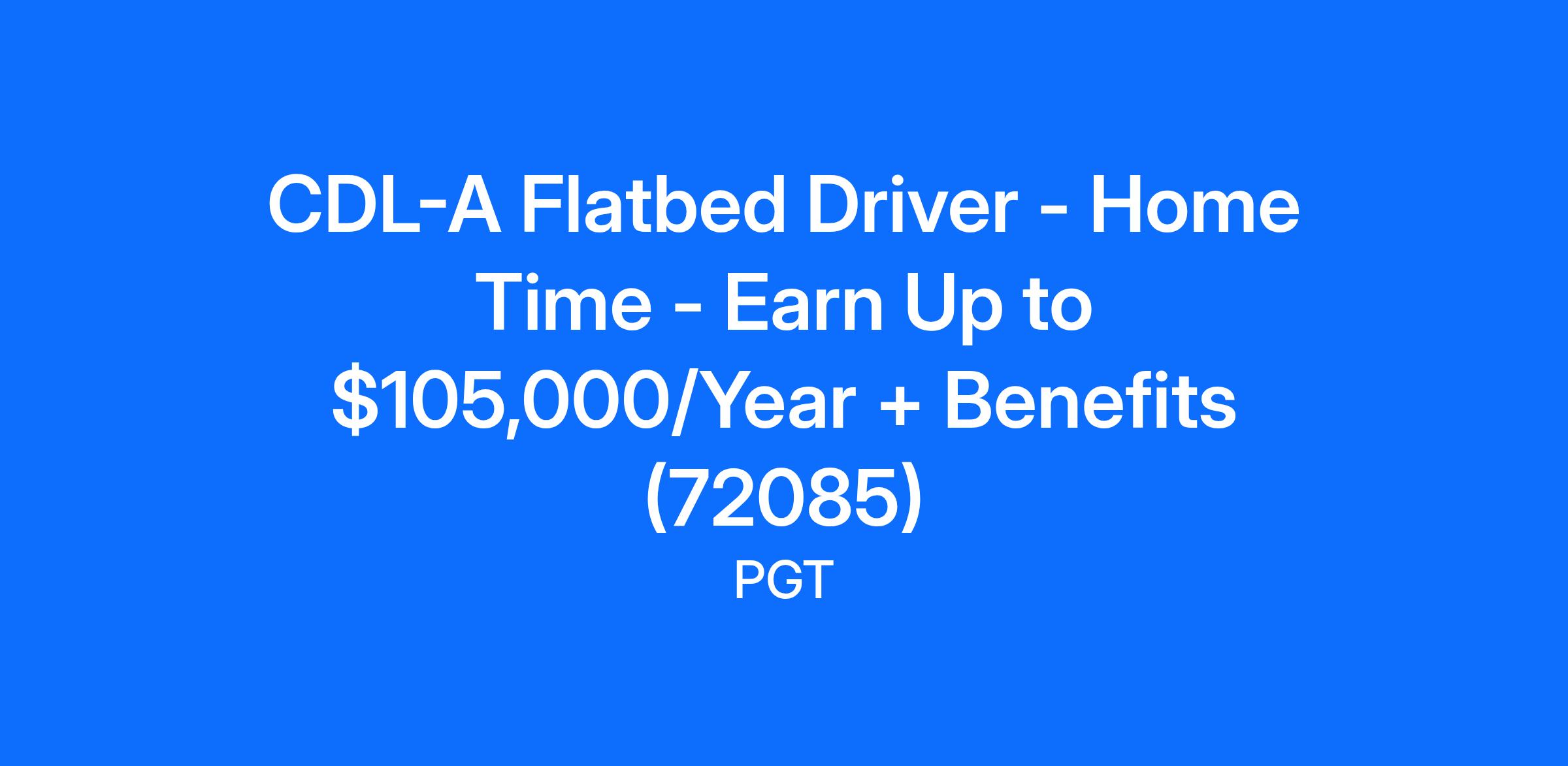 CDL-A Flatbed Driver - Home Time - Earn Up to $105,000/Year + Benefits (72085)