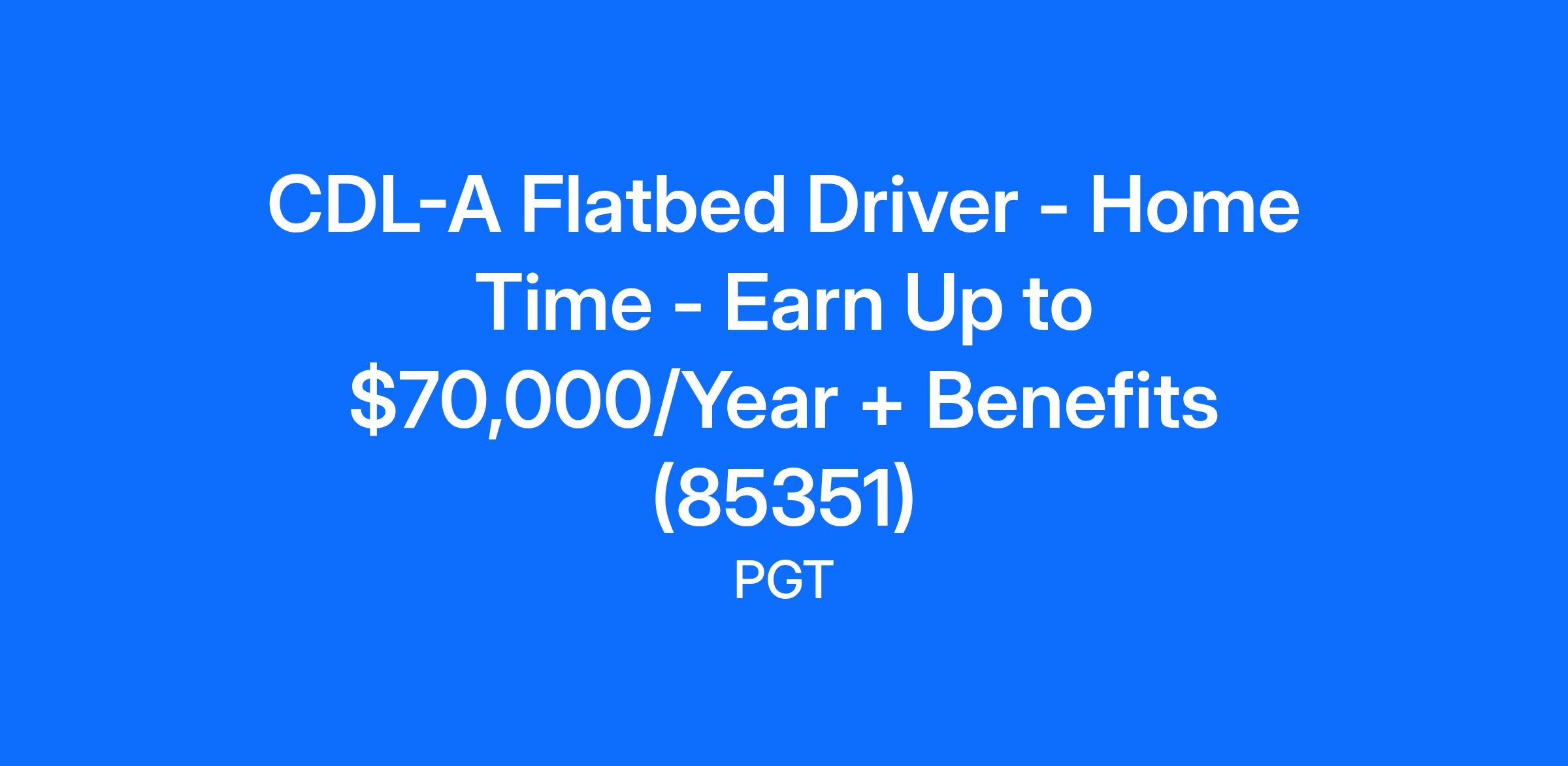 CDL-A Flatbed Driver - Home Time - Earn Up to $70,000/Year + Benefits (85351)