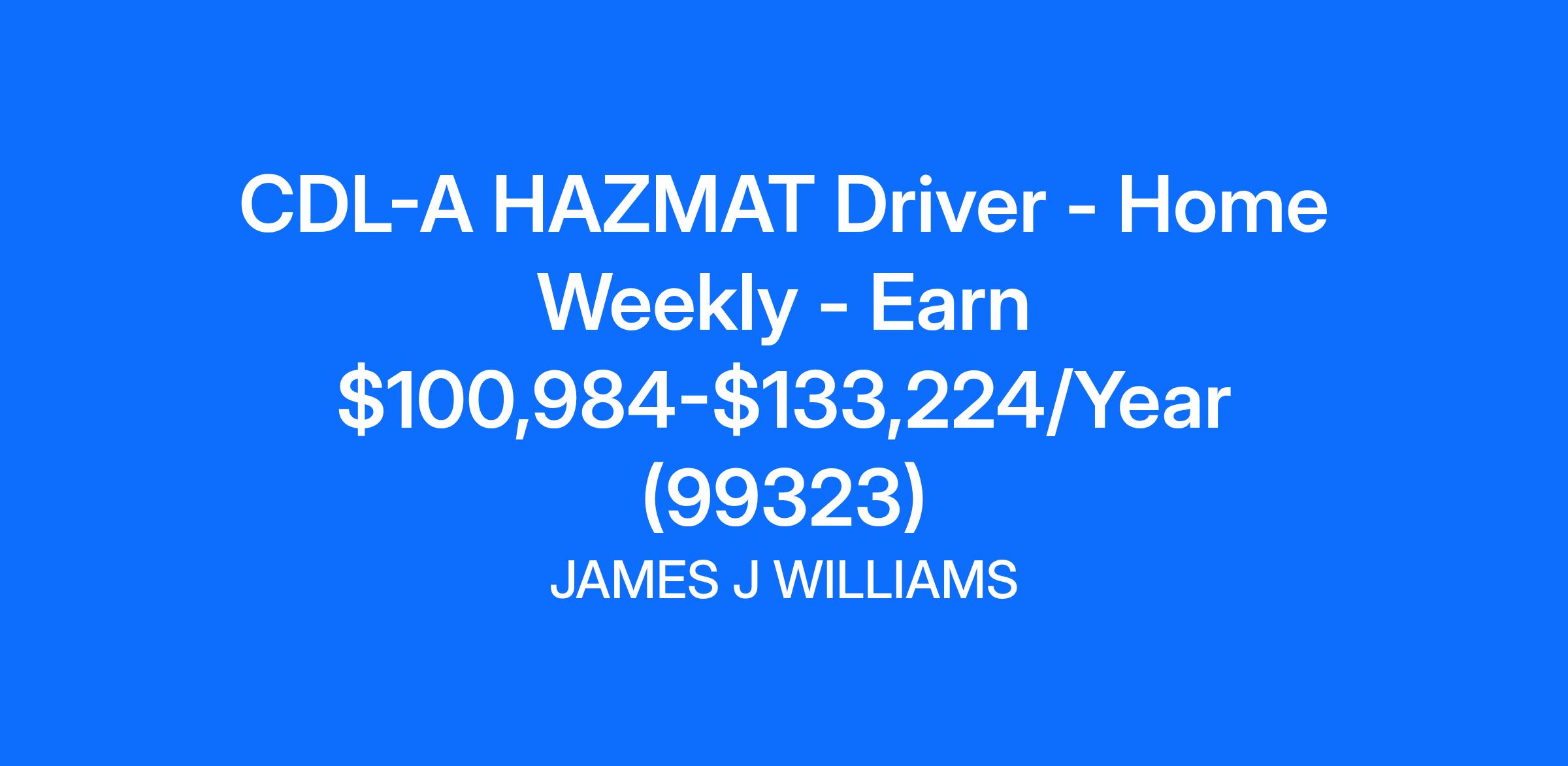 CDL-A HAZMAT Driver - Home Weekly - Earn $100,984-$133,224/Year (99323)