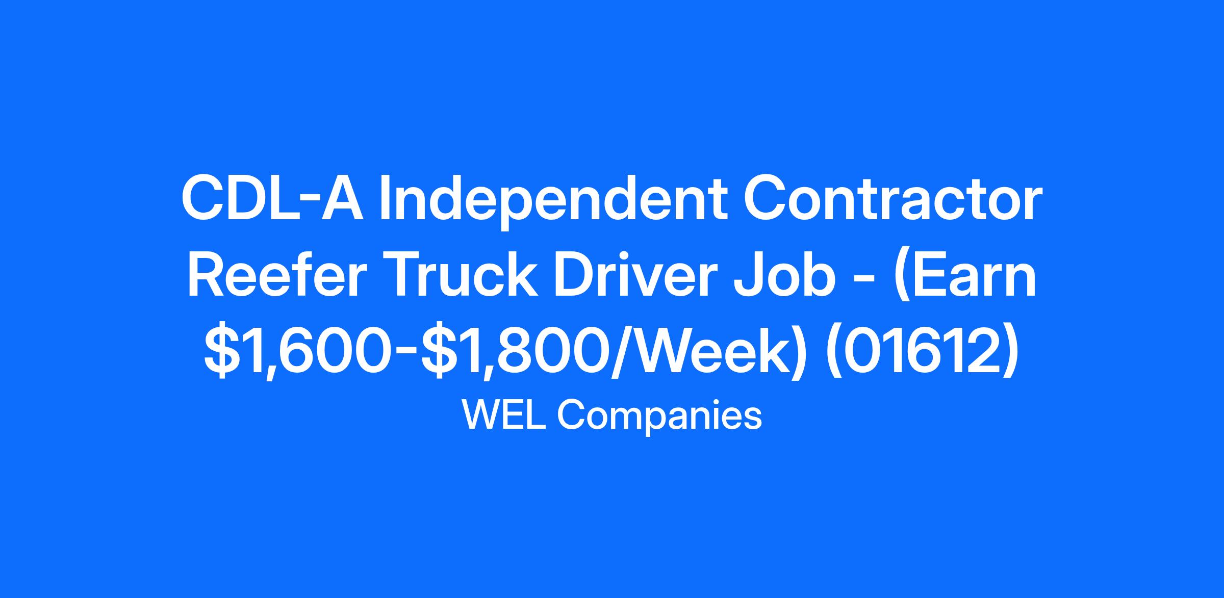 CDL-A Independent Contractor Reefer Truck Driver Job - (Earn $1,600-$1,800/Week) (01612)