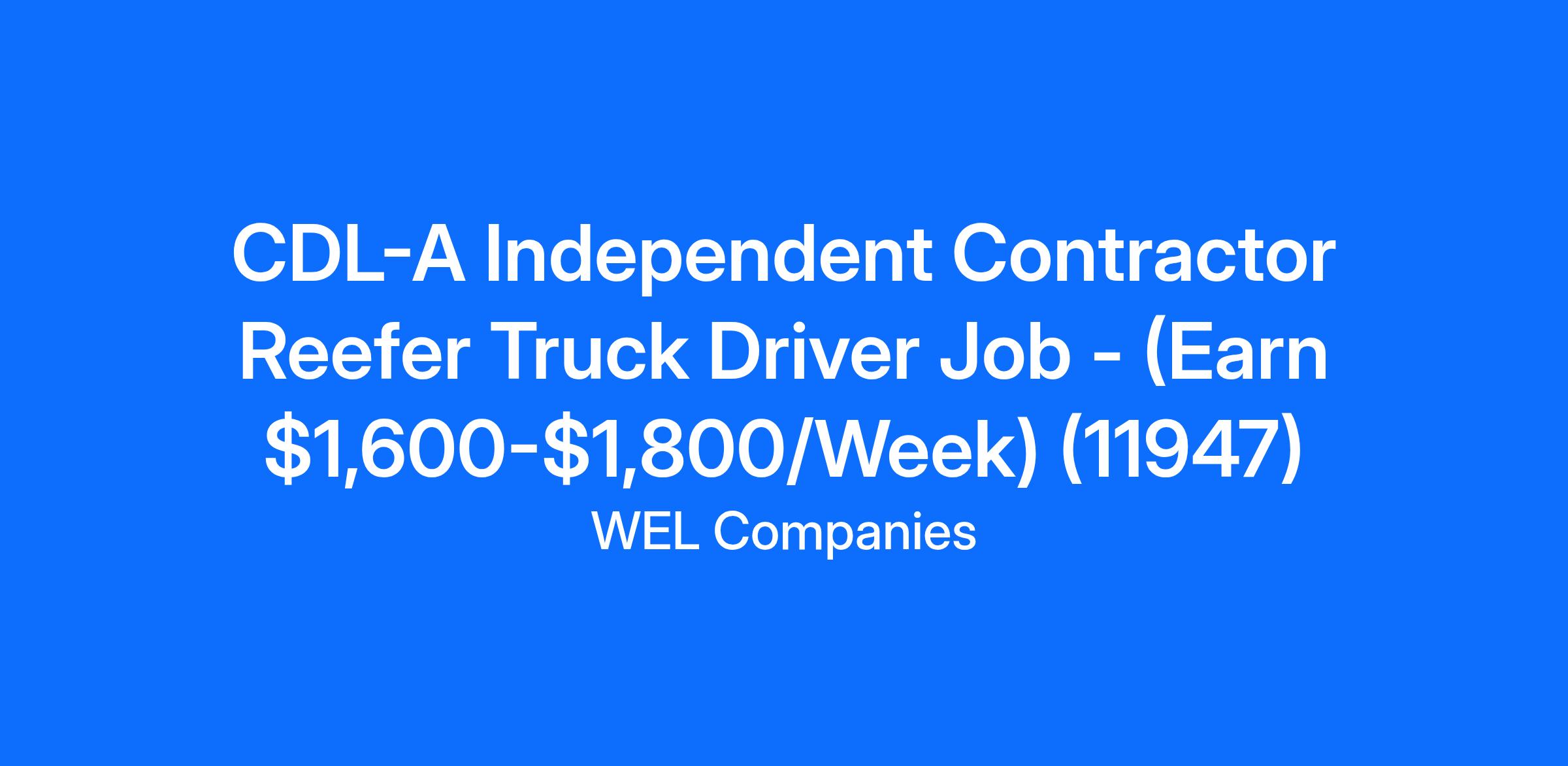 CDL-A Independent Contractor Reefer Truck Driver Job - (Earn $1,600-$1,800/Week) (11947)