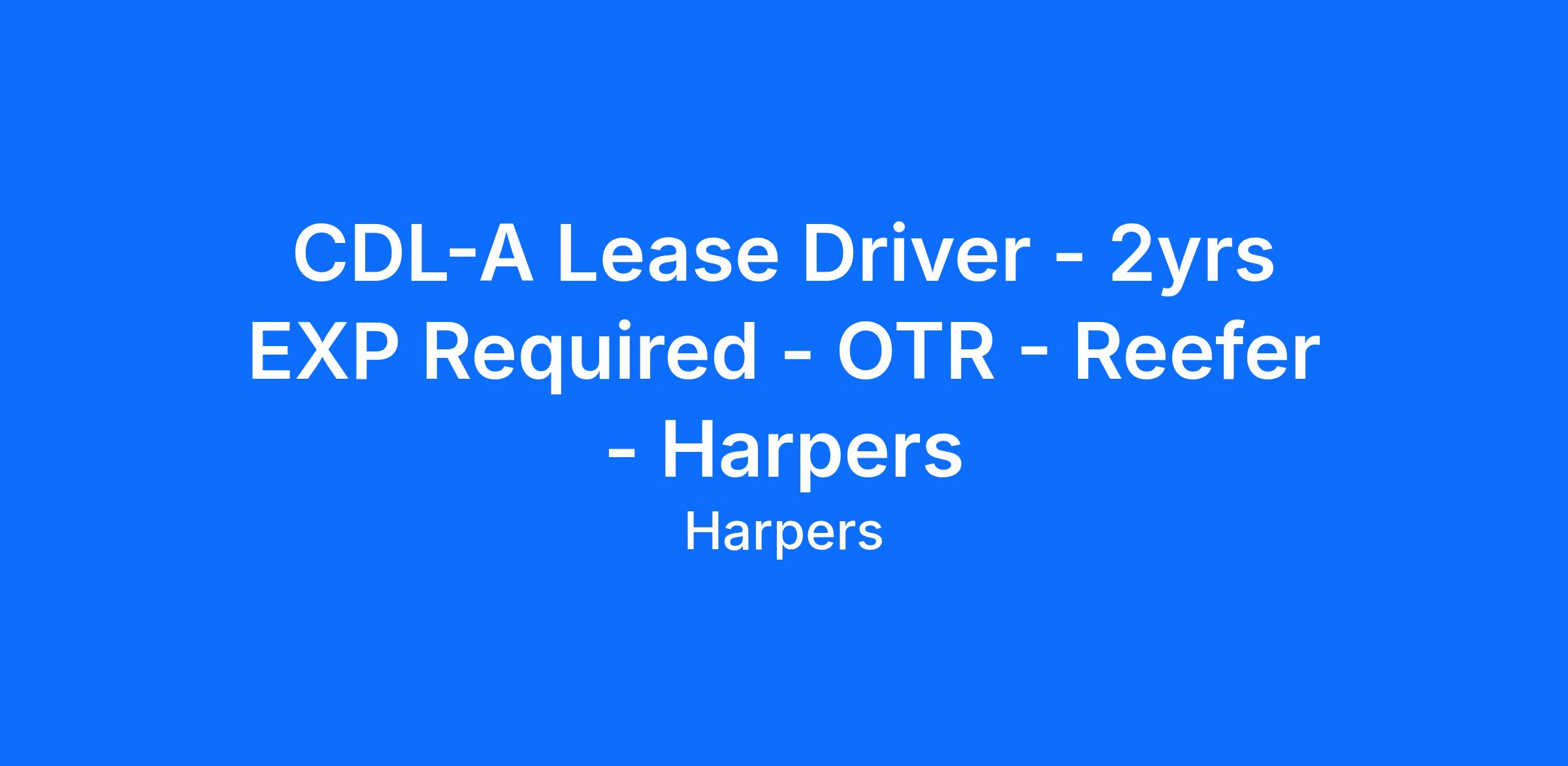 CDL-A Lease Driver - 2yrs EXP Required - OTR - Reefer - Harpers