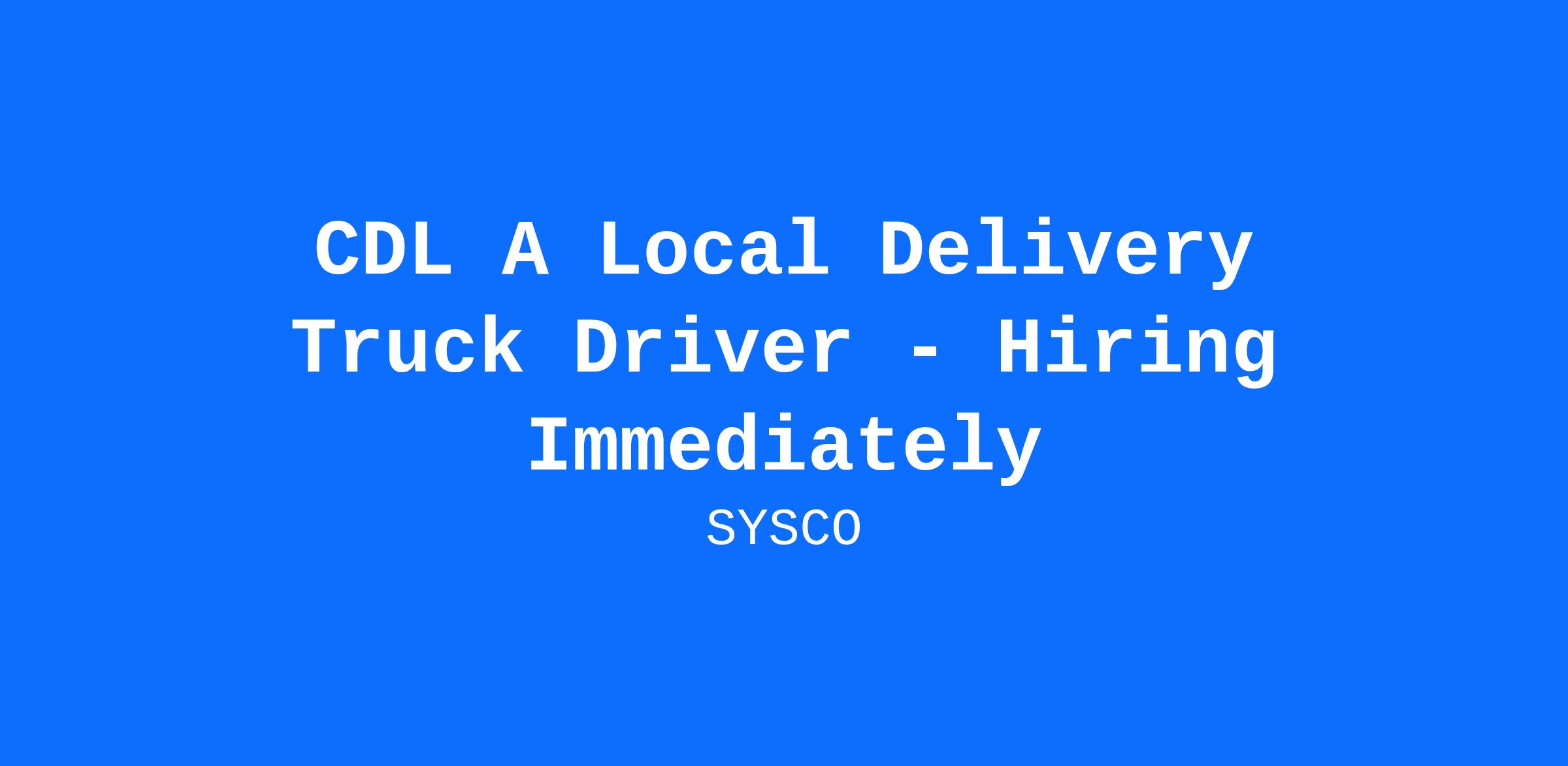 CDL A Local Delivery Truck Driver - Hiring Immediately