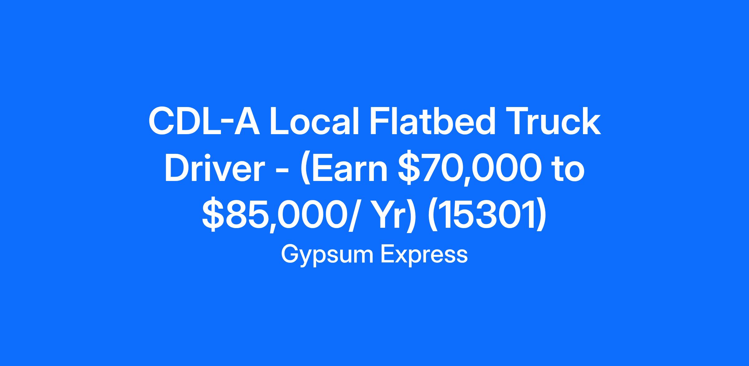 CDL-A Local Flatbed Truck Driver - (Earn $70,000 to $85,000/ Yr) (15301)
