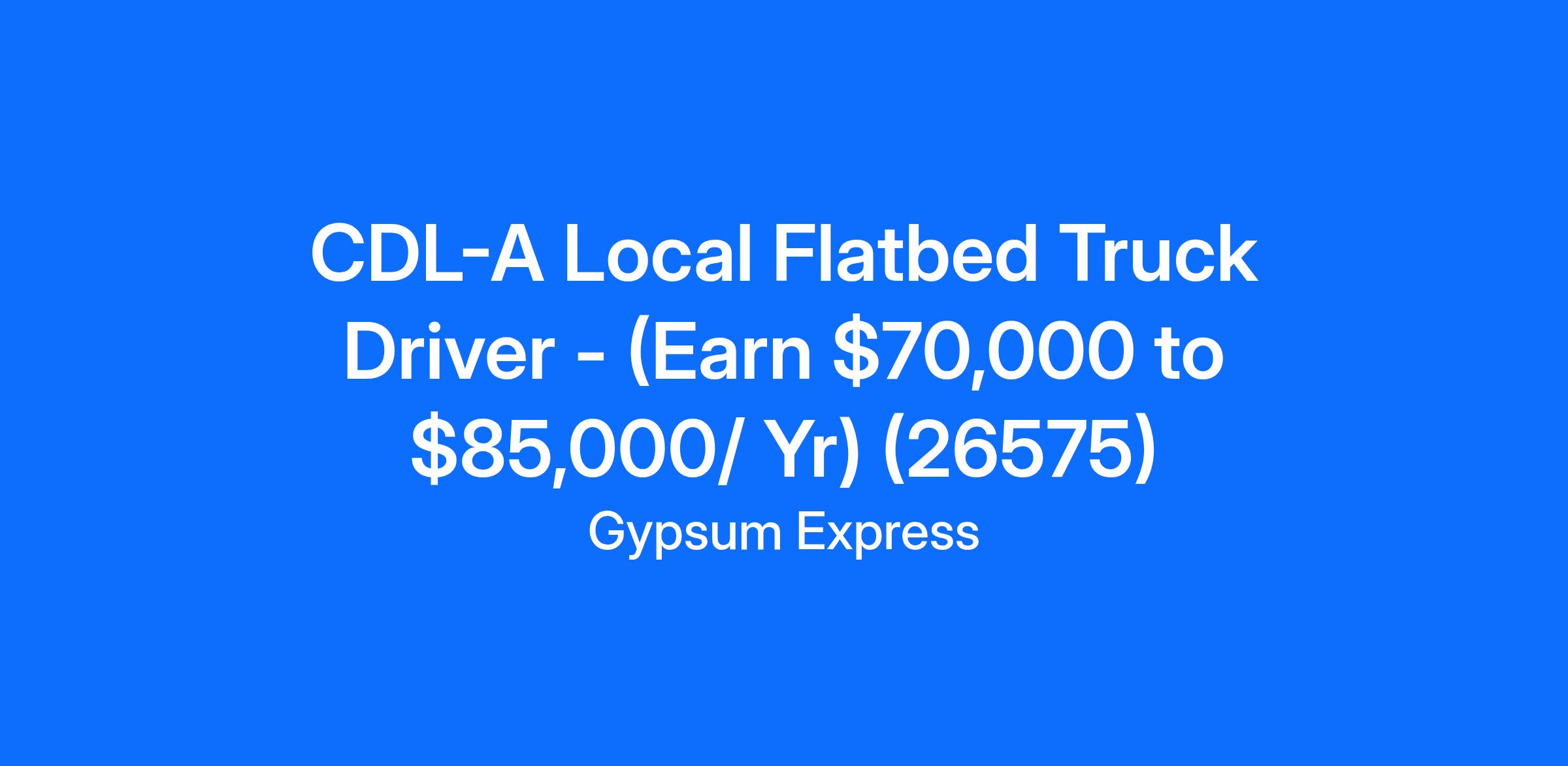 CDL-A Local Flatbed Truck Driver - (Earn $70,000 to $85,000/ Yr) (26575)