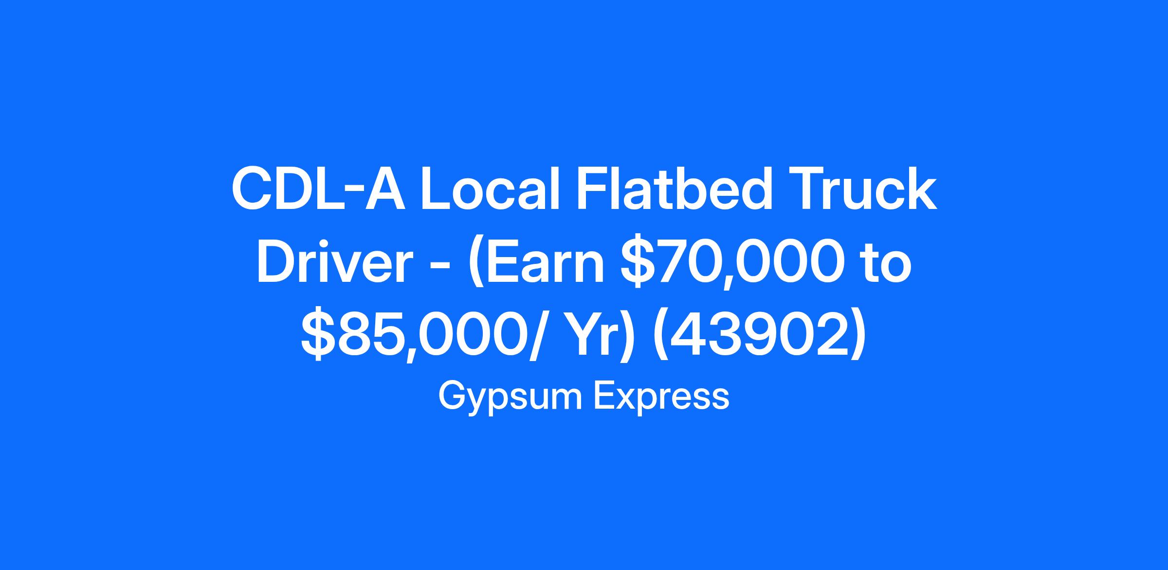CDL-A Local Flatbed Truck Driver - (Earn $70,000 to $85,000/ Yr) (43902)