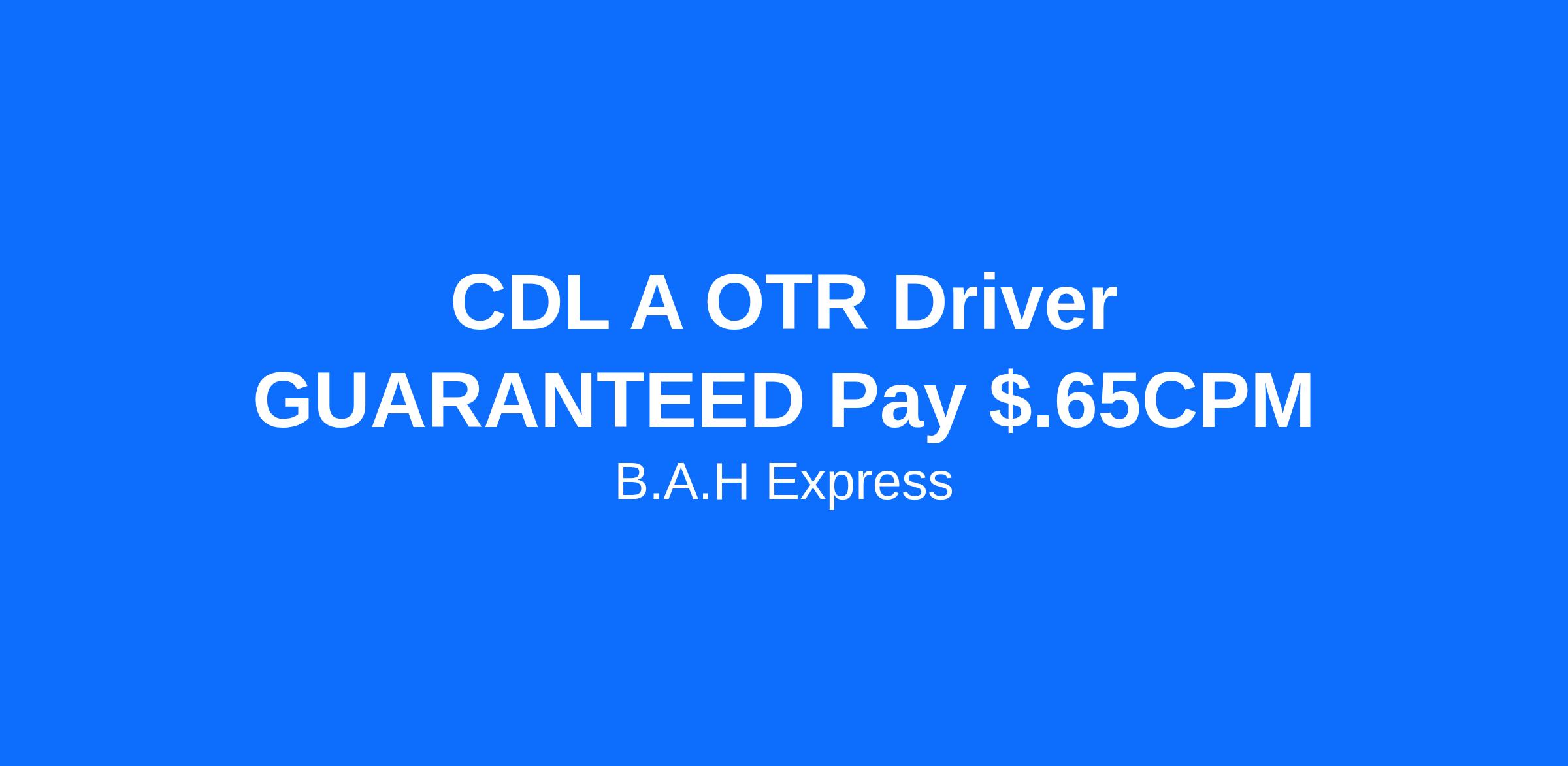Ready to start driving on your terms? OTR Pay without driving for 2-3 weeks with no home time. Begin your new career with B.A.H. Express, Inc.