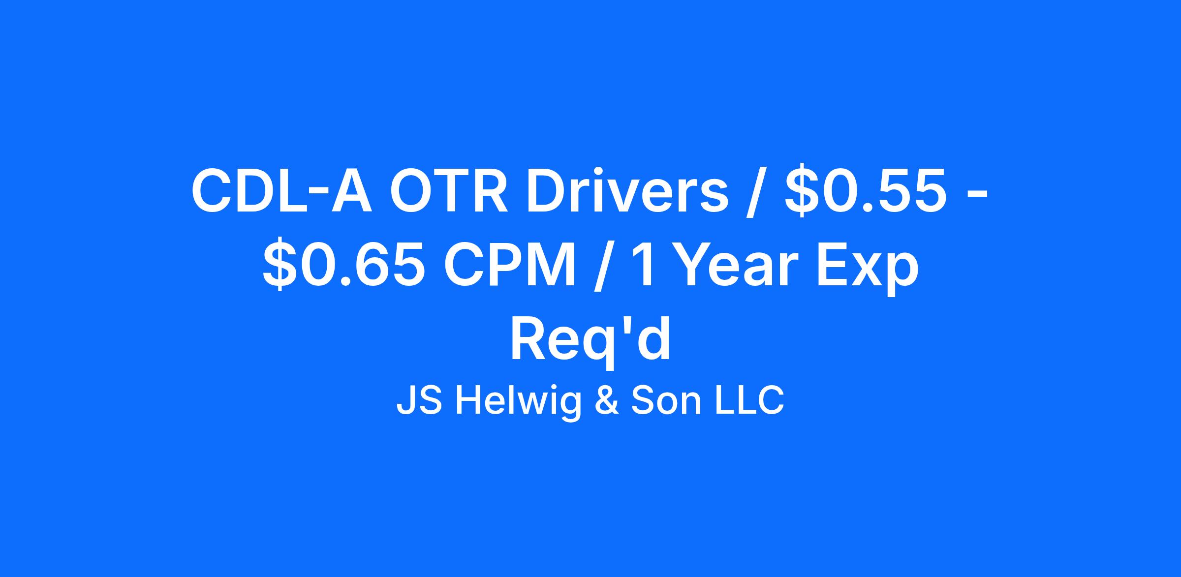 CDL-A OTR Drivers / $0.55 - $0.65 CPM / 1 Year Exp Req'd