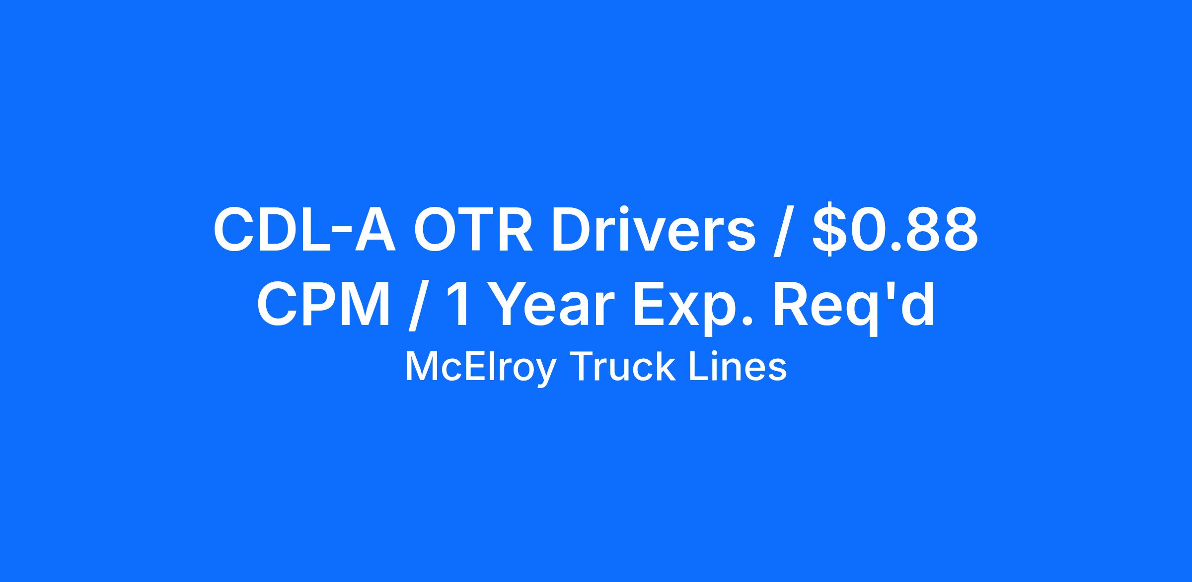 CDL-A OTR Drivers / $0.88 CPM / 1 Year Exp. Req'd