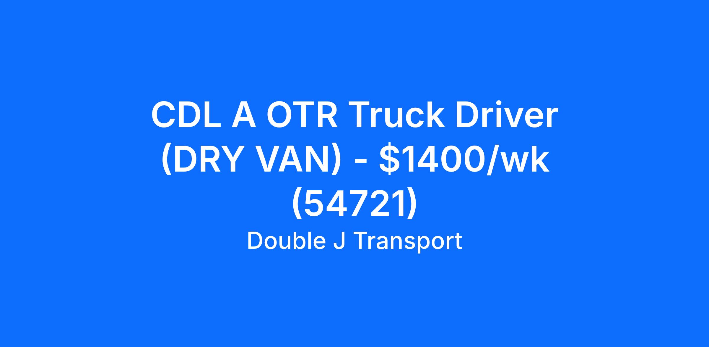 CDL A OTR Truck Driver (DRY VAN) - $1400/wk (54721)