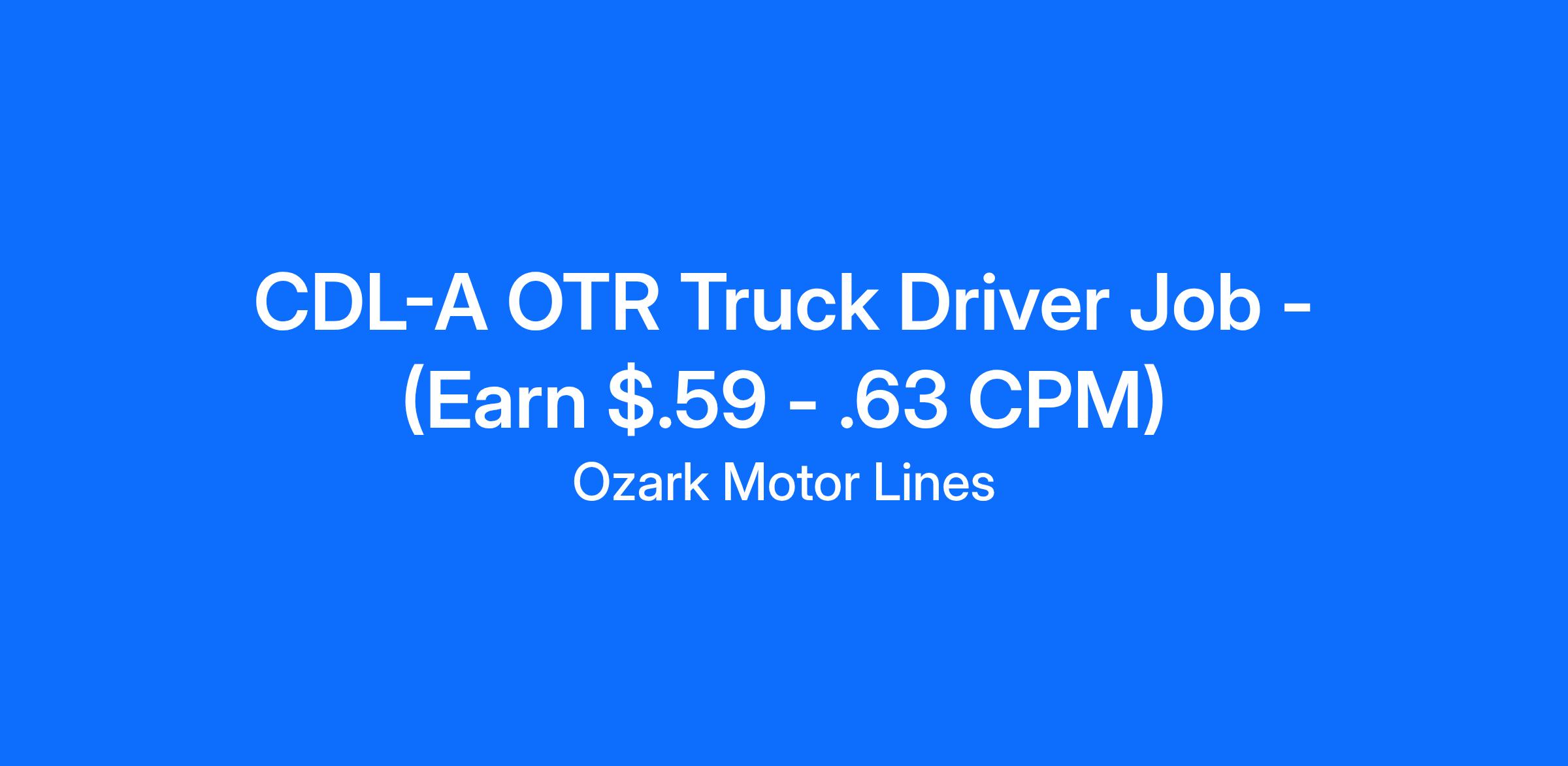 CDL-A OTR Truck Driver Job - (Earn $.59 - .63 CPM)