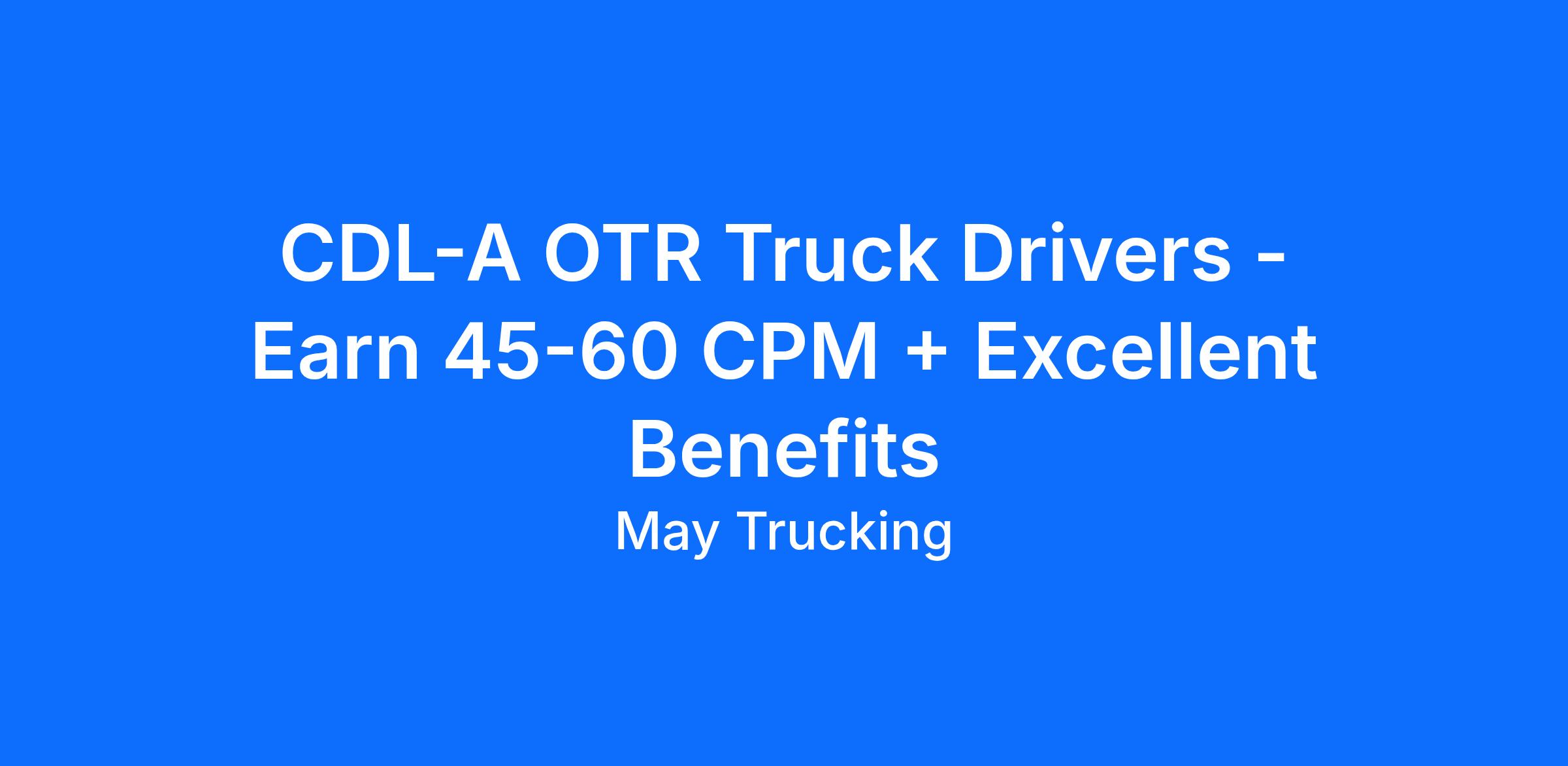 May Trucking Company is hiring ENTRY-LEVEL and EXPERIENCED CDL-A OTR Truck Drivers!