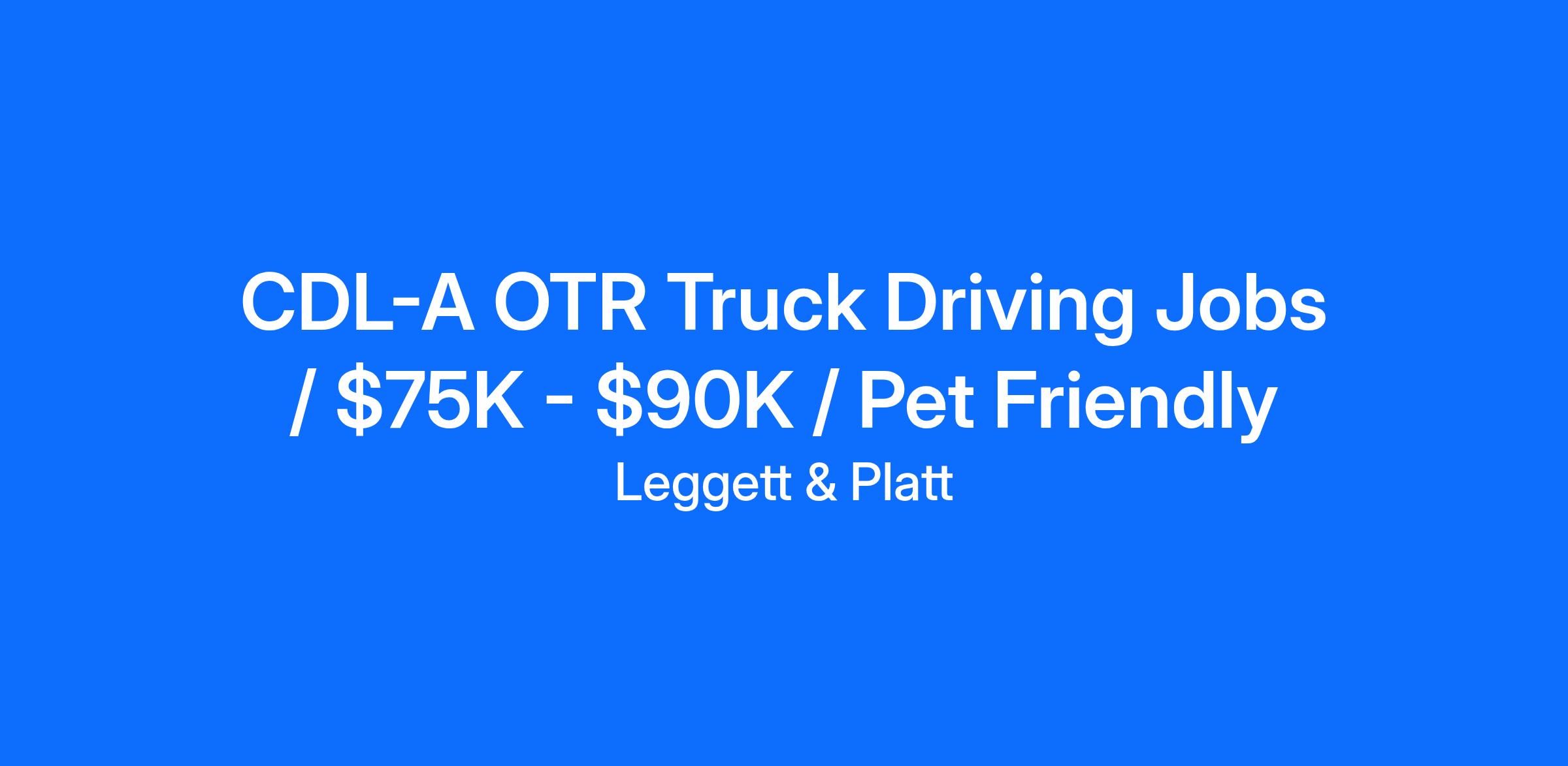 Now Hiring OTR Company Drivers Our Top 10% of Drivers are Averaging $90KDrivers average $75K Per Year & Top 10% are averaging $90KQuarterly Safety & Performance Bonuses Start Day 1!2-Day Paid OrientationPassenger & Pet FriendlyTenure Pay Starting at 6 Months of ServiceMedical (Leggett provides 75% of coverage), Dental, Vision, and Life InsuranceWeek's Paid Vacation available after 90 daysNine (9) Paid HolidaysDrivers receive home time after being out 10-14 days at a time We Offer:Limited Touch Freight80% Company FreightNon-Hazmat FreightFull Fleet Electronic Logs (Omnitracs) Qualifications:Must be at least 22 years old with a valid Class A Commercial Driver?s LicenseHave at least one (1) year verifiable Over-the-Road experienceMeet all DOT and Company requirements About Us:Leggett & Platt GSC is part of Leggett & Platt®, a diversified manufacturer that pioneered sleep technology when it introduced its bedspring in 1883. Leggett & Platt now conceives, designs, and produces a diverse array of products that can be found in most homes, offices, and vehicles. With facilities around the world, Leggett & Platt has become a global leader in the industries it serves. Leggett & Platt GSC benefits from the stability and worldwide network offered by our parent company. Today our growing 137-year-old company is comprised of 15 business units and 140 facilities located in 18 countries. We're not just hiring, we're building a better company.We want you to be able to work happily and live comfortably. Our comprehensive rewards package helps you do both. While some benefits vary by location, no matter where you are, we want you to be able to manage your health, wealth, and work/life success.Leggett & Platt is an Equal Opportunity Employer. All qualified applicants will receive consideration for employment without regard to sex, gender identity, sexual orientation, race, color, religion, national origin, disability, protected Veteran status, age, or any other characteristic protected by applicable law.