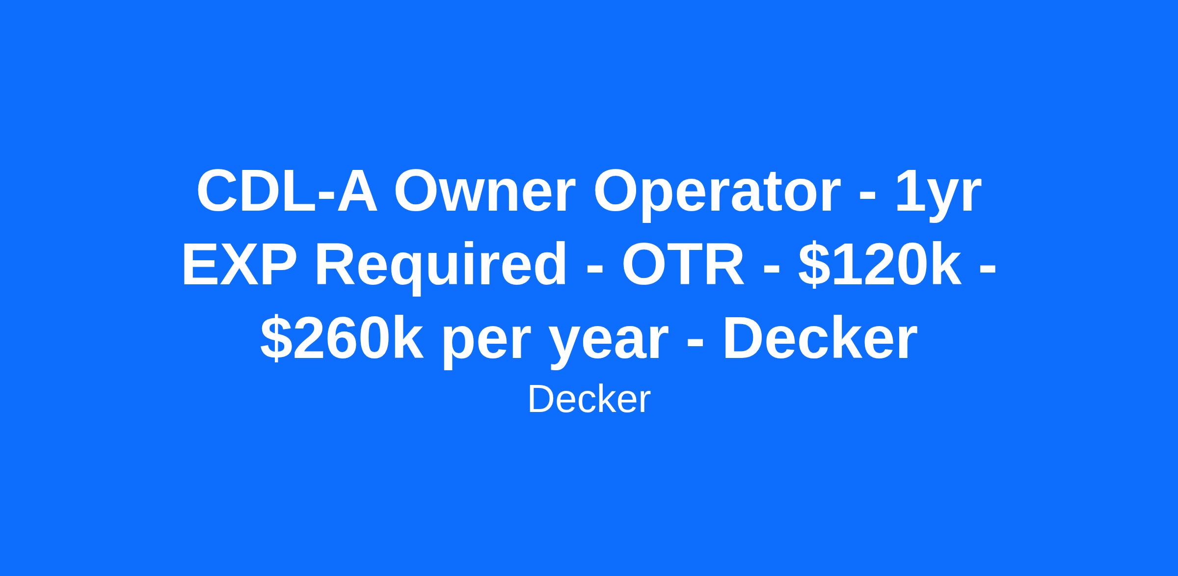 CDL-A Owner Operator - 1yr EXP Required - OTR - $120k - $260k per year - Decker
